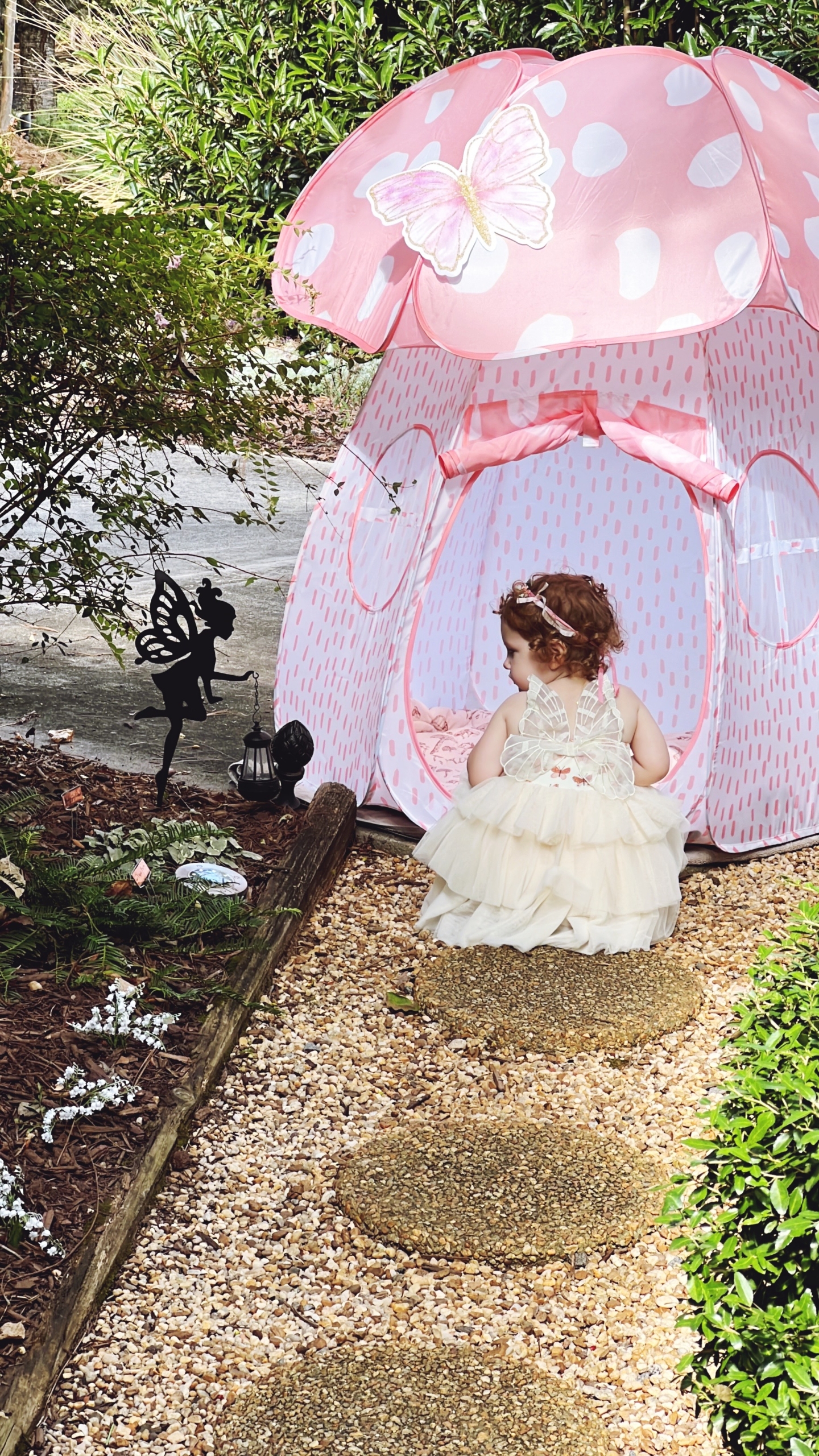 Charlotte decided to head off into the fairy garden first. This fairy garden has been a work in progress for the past few years, and we added even more luscious ferns and flowers in honor of Charlotte’s big day.