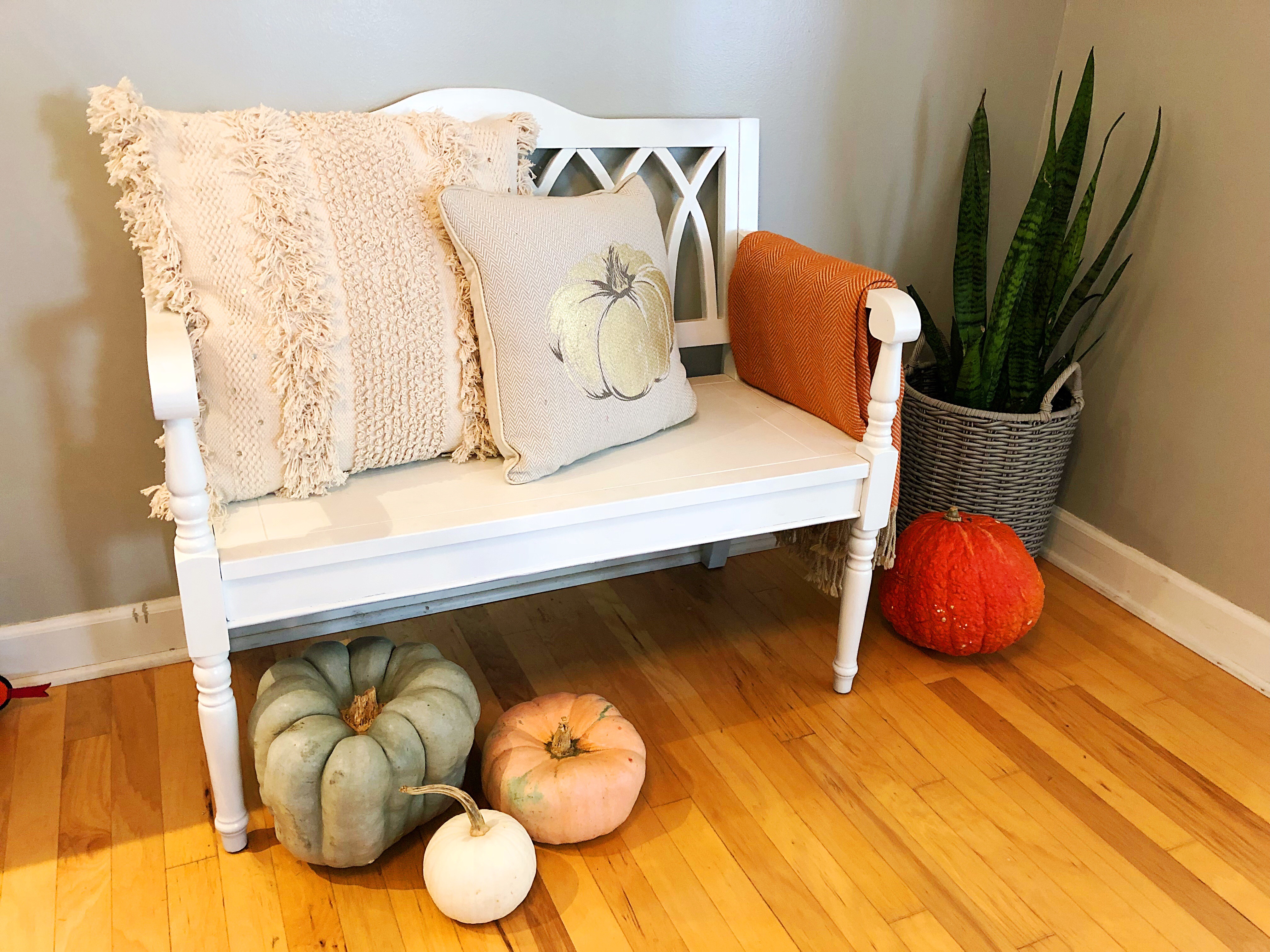 One of the pillow’s from Joanna Gaine’s Target collection, along with the pumpkins that we would be working with for our annual pumpkin project.