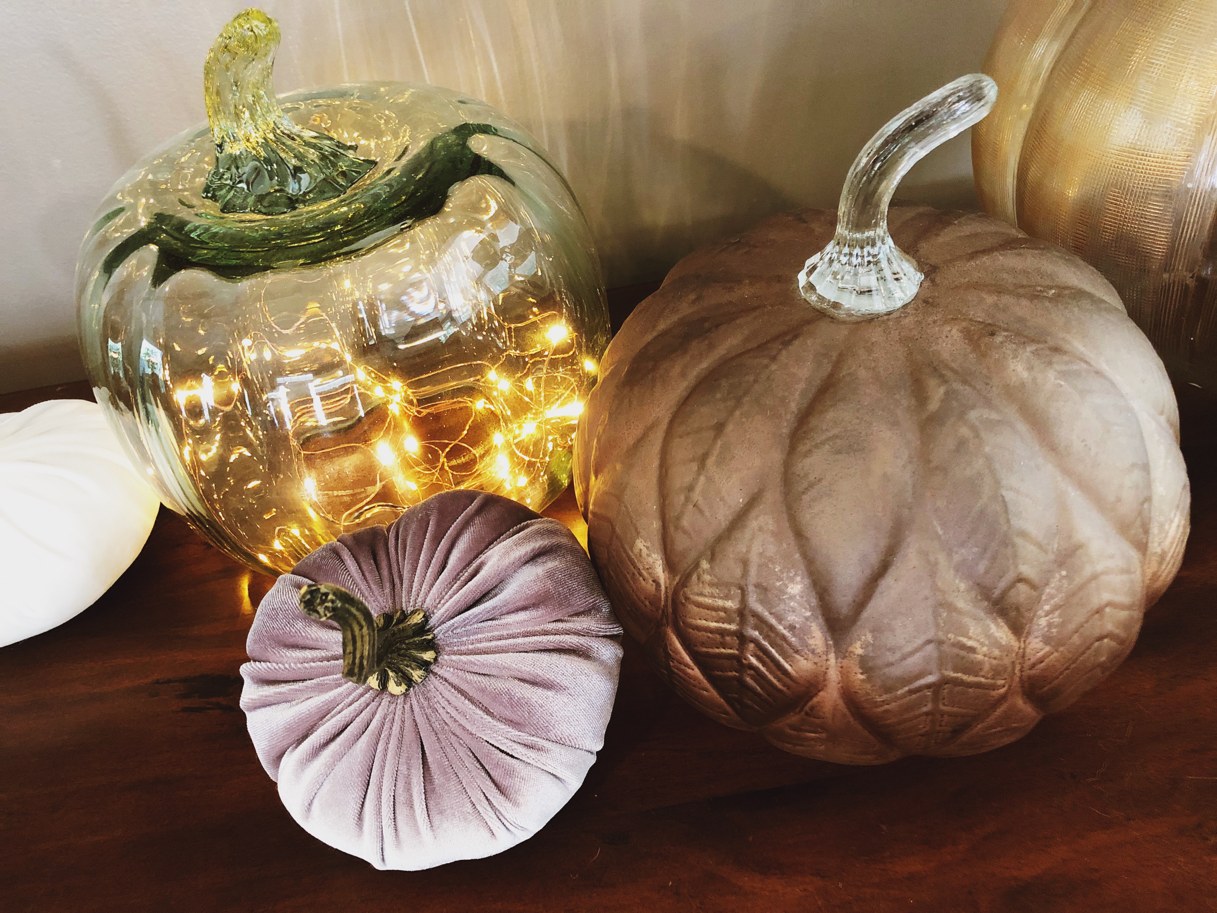 Regardless of the season, twinkle lights are always a whimsy addition to any display. The glass and velvet pumpkins were my absolute favorite.