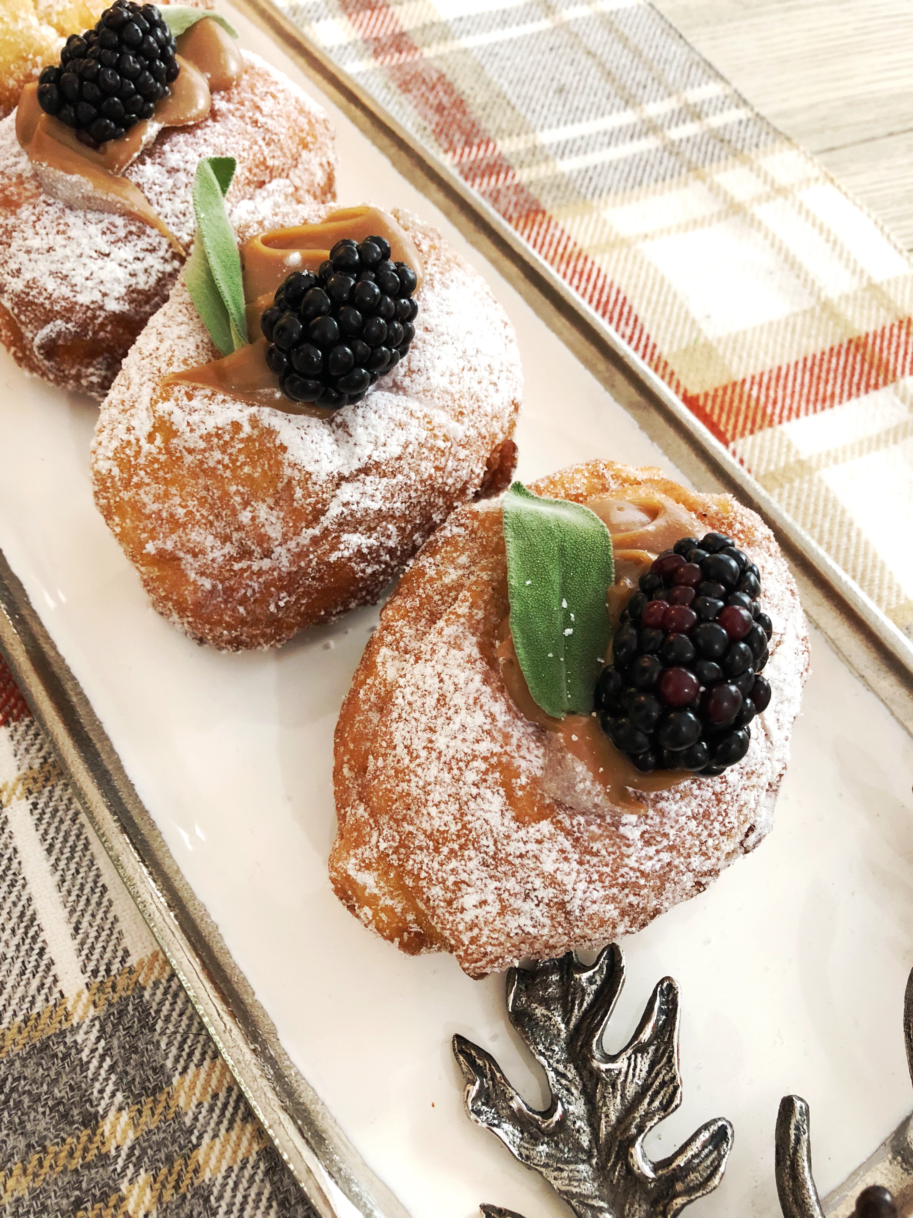With every birthday celebration, a delicious dessert is absolutely essential. Since I’ve always wanted to have a special order dessert for my birthday, this year we had the pastry chef at Lincoln’s Haberdashery (in CLT’s Southend) recreate these Spice Pear and Chocolate Brioche Donuts.