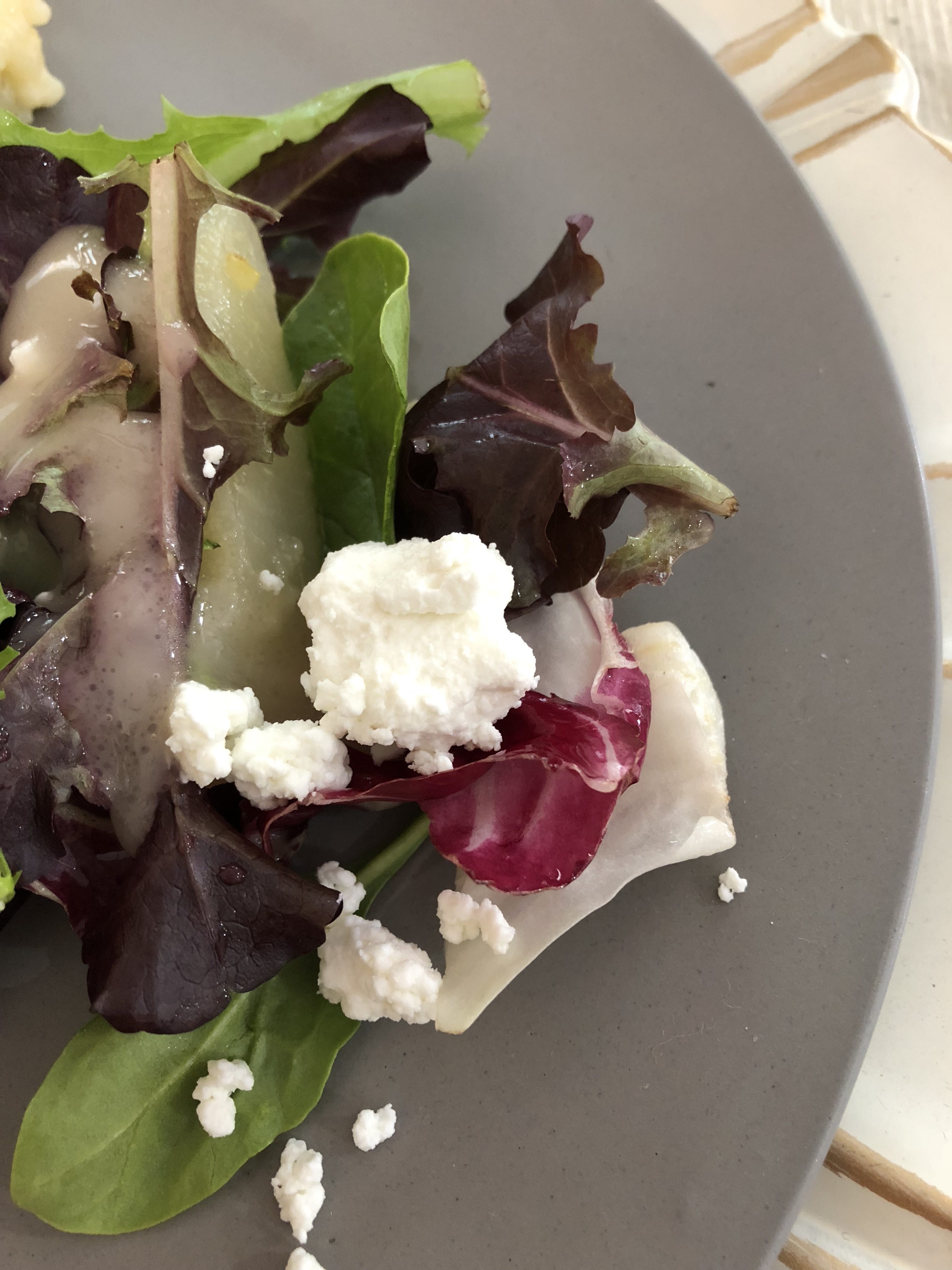 For lunch we enjoyed a repeat of last years delicious risotto and a mixed green salad with pears and crumbled goat cheese. If you need a quick go to salad for your fall gatherings this salad would be the one.