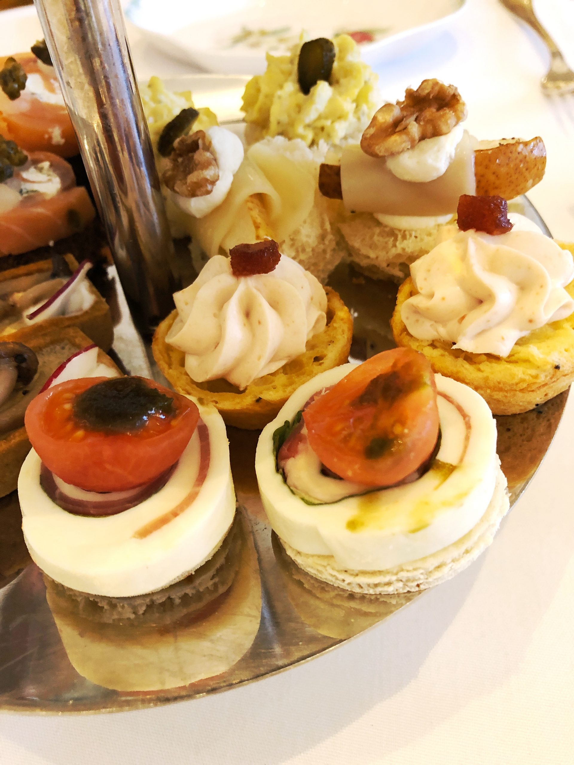 Since I always enjoyed savory over sweet (in general, but there are exceptions) I always go for the egg salad sandwiches first, and for this particular there was also a savory mushroom tart that was one of the best savory tarts I’ve had the opportunity to enjoy. I would have been happy with just a plateful of the mushroom tarts, the cherry mousse and the egg nog scones. Absolute perfection!