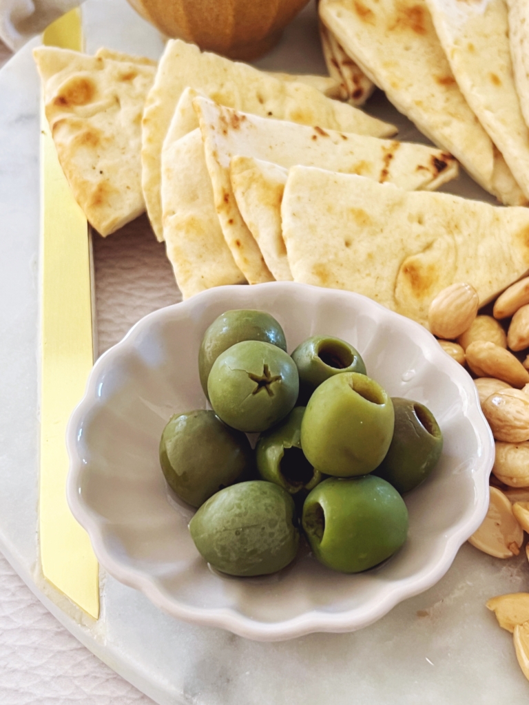 I recently tried the early harvest/cold-pressed extra virgin olive oil from Heraclea, a Turkish olive oil brand. Creating a Mediterranean-inspired board was something that had been on my mind for the past few summers, and after I found the other items for my board, everything came together.