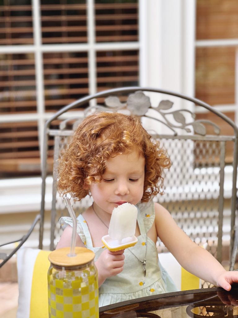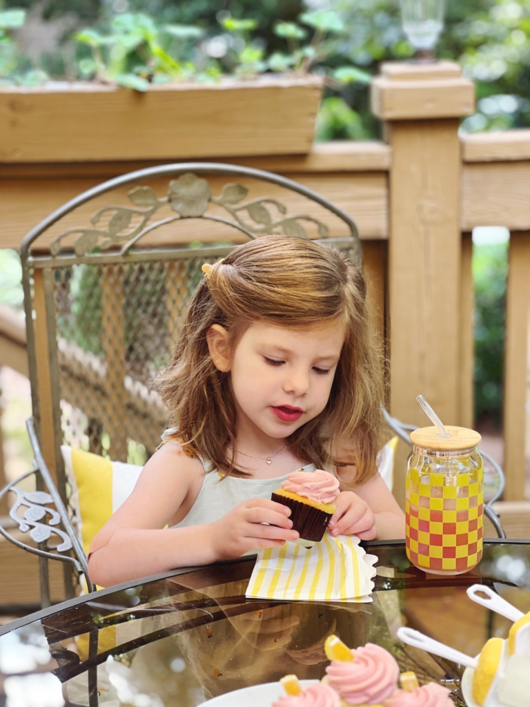 We picked up some raspberry lemonade cupcakes from Suarez Bakery (the Park Rd location) the day before the party. The special cups with lids for the girls, ice cubes, and ice pop molds were found at Homegoods and then it was time to head to the store to pick up a few more jugs of Simply Lemonade (Lemon and Raspberry Lemonade) so we could make our lemonade popsicles.