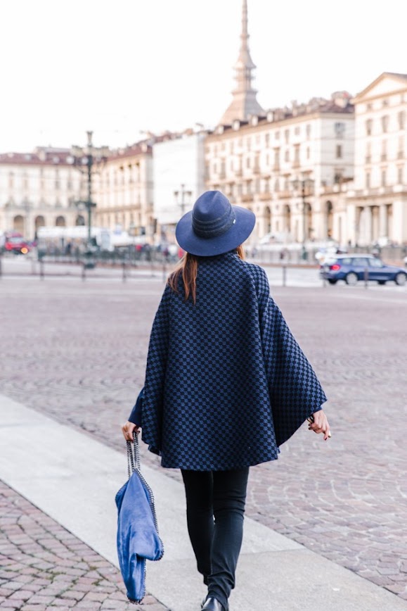 Lucia: I love the Rachel Bansky Blue Cape, I wear it as a combo with the Twiggy blazer it’s the perfect look for a casual yet elegant stroll in Torino’s piazzas.