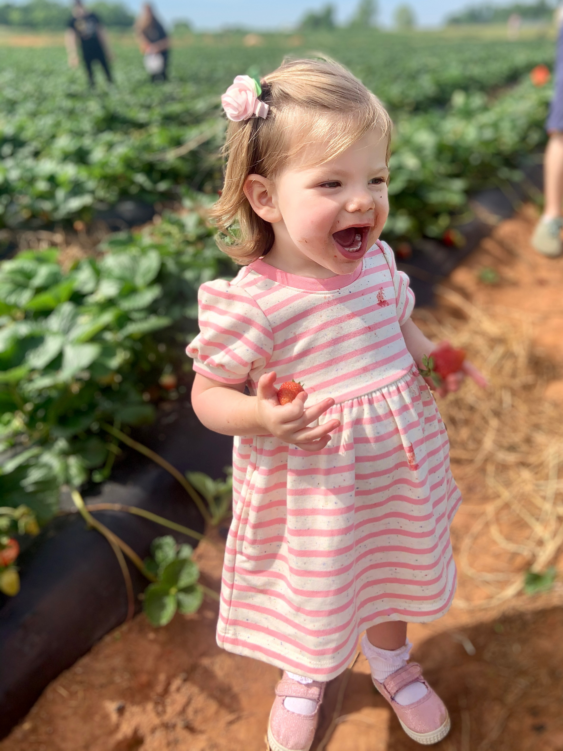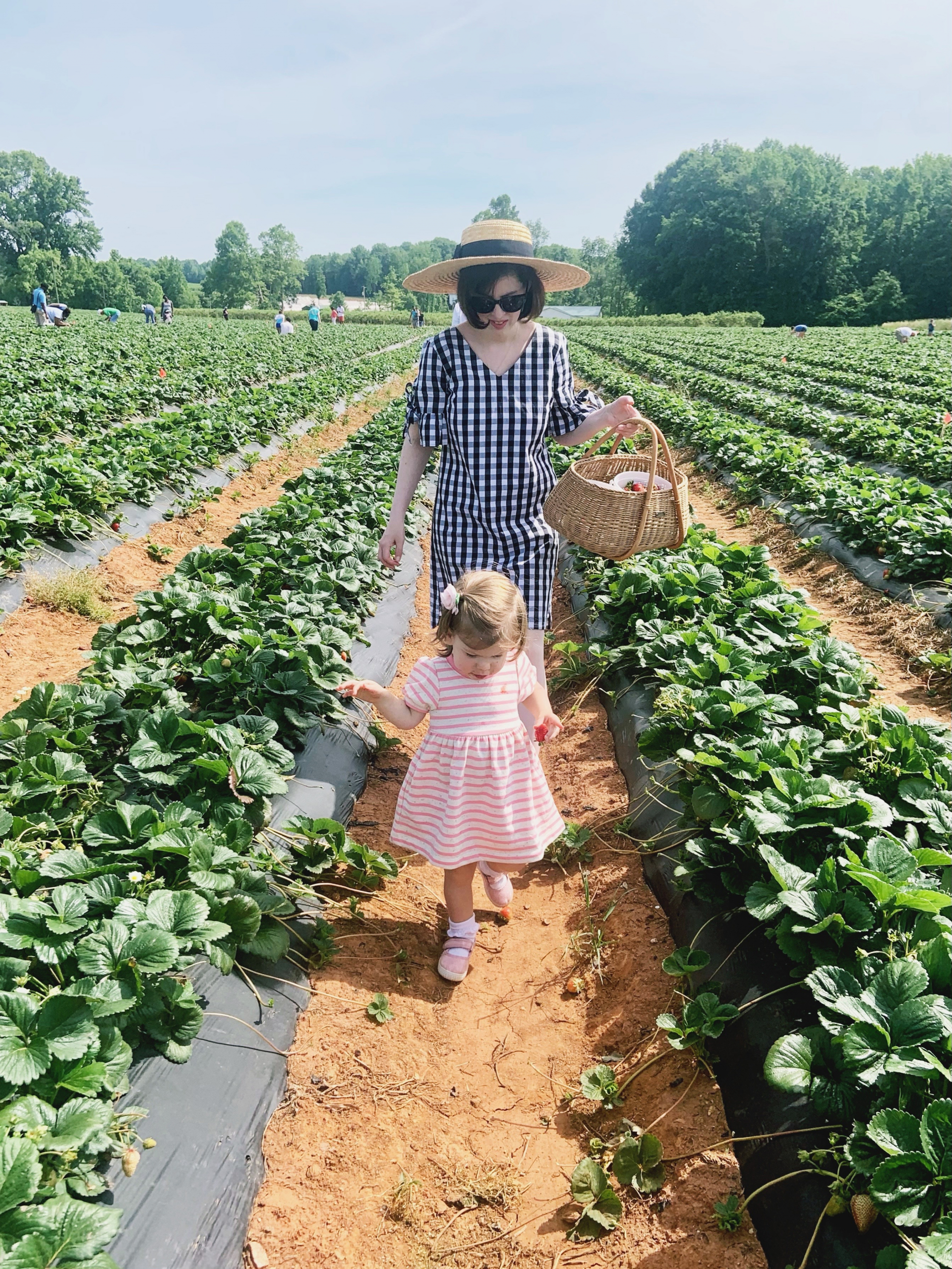 When planning your summer outdoor activities, berry picking definitely deserves a place on your to-do list. Last year we visited Bush N Vine in York, South Carolina to pick the most gorgeous sunflowers, and this year we were able to visit during their strawberry picking season. It’s such an enjoyable activity for the whole family and my sister, brother-in-law and niece joined us for our morning on the farm.