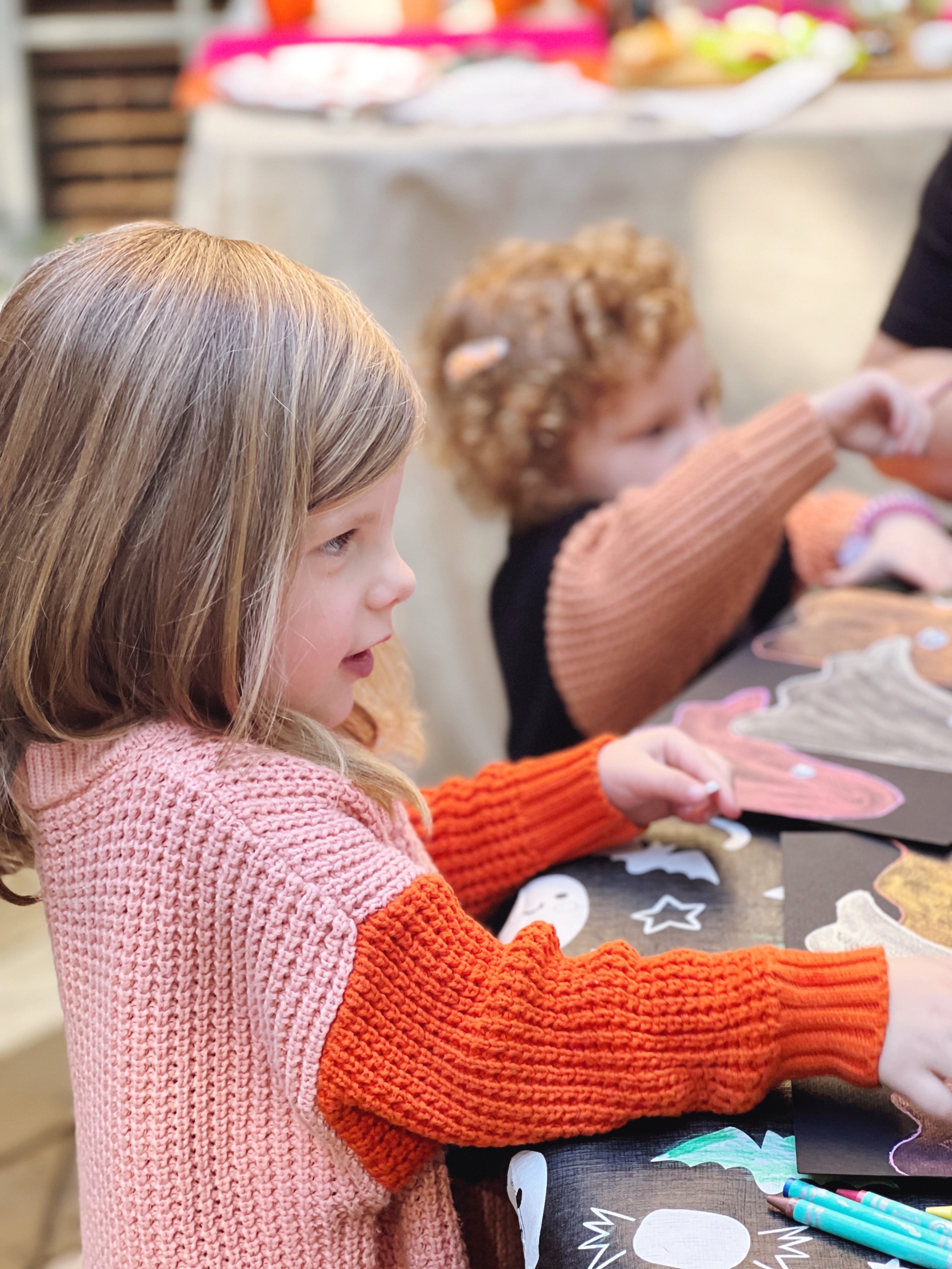 Having a tablecloth that the littles can color on while they wait for the food to be set up is definitely the way to go. Just have washable crayons and markers on hand and they’re entertained.