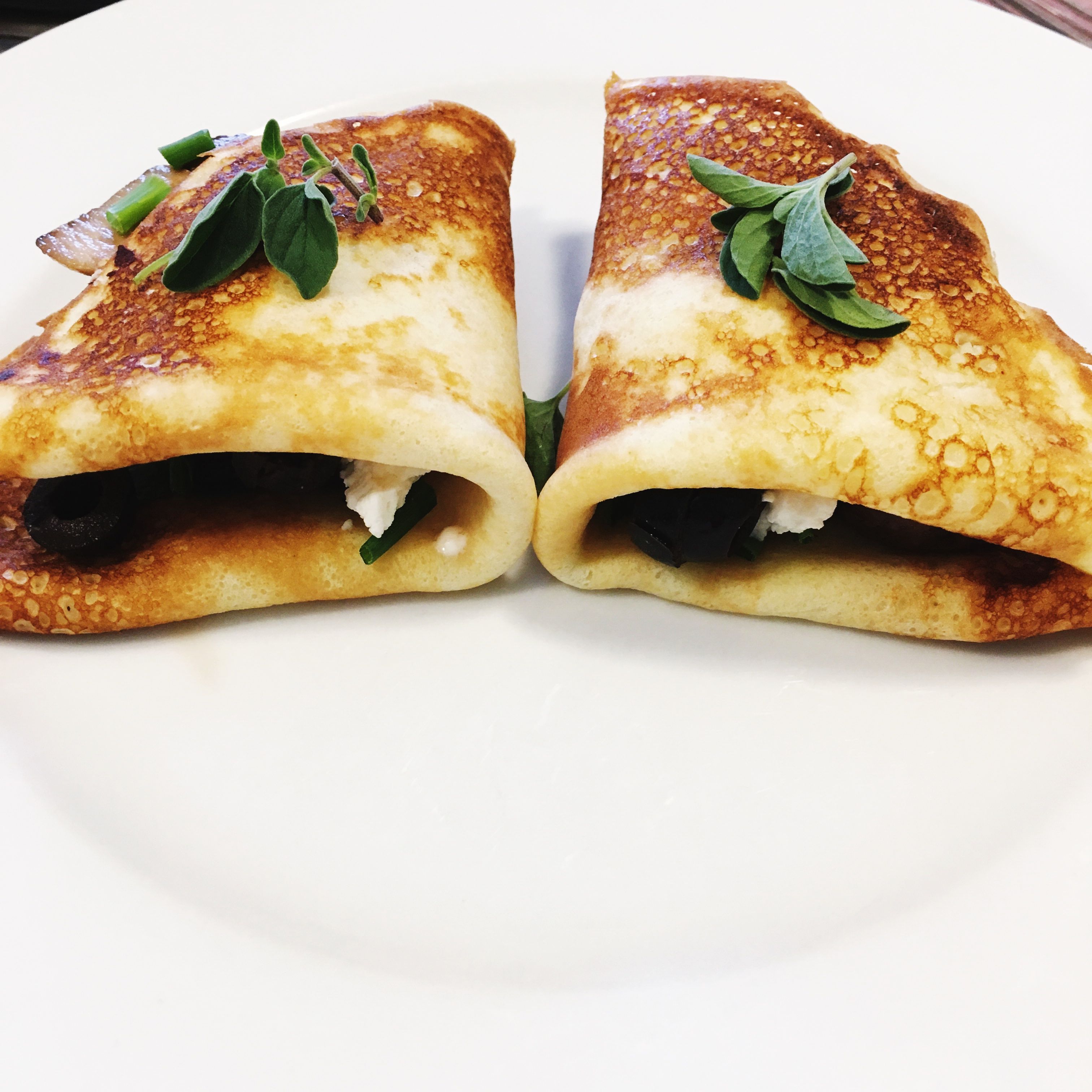 Savory Crepes with Spinach, Mushrooms & Chèvre