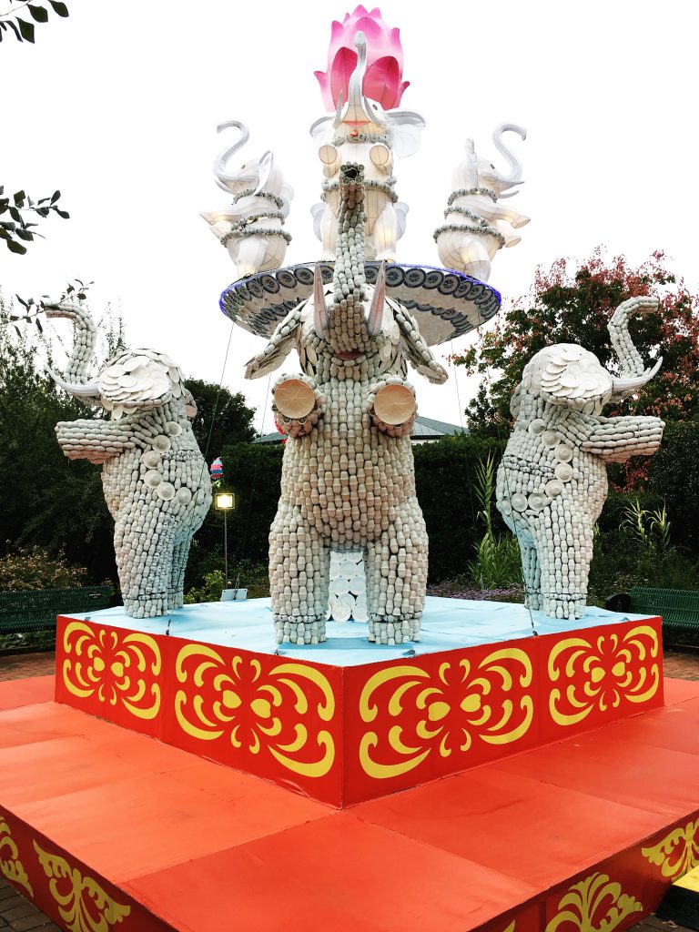 You can see beautiful butterflies and birds hanging from the trees, dolphins and hippos down the main path. A collection of white elephants ‘hidden’ from view until you walk through the tall hedges.