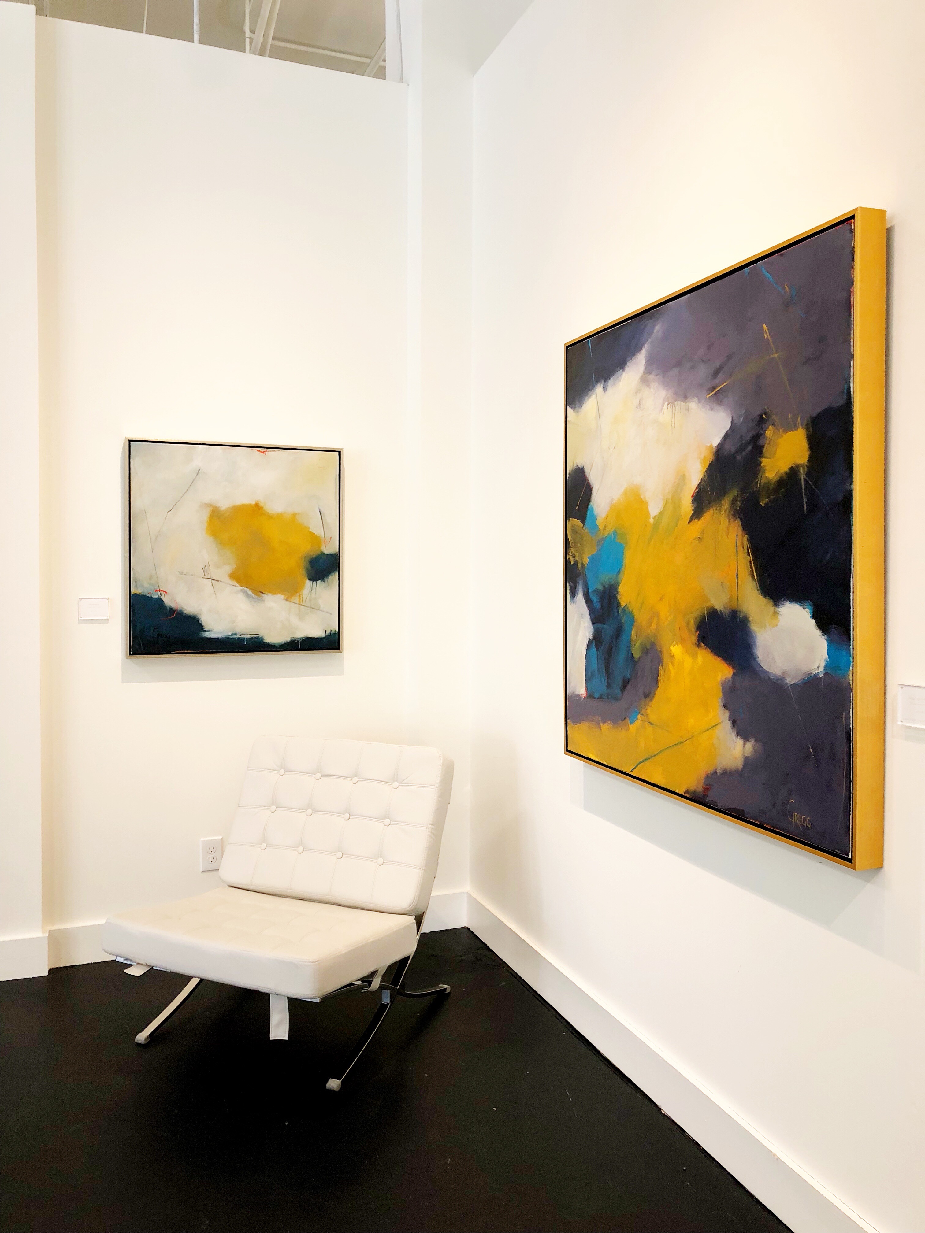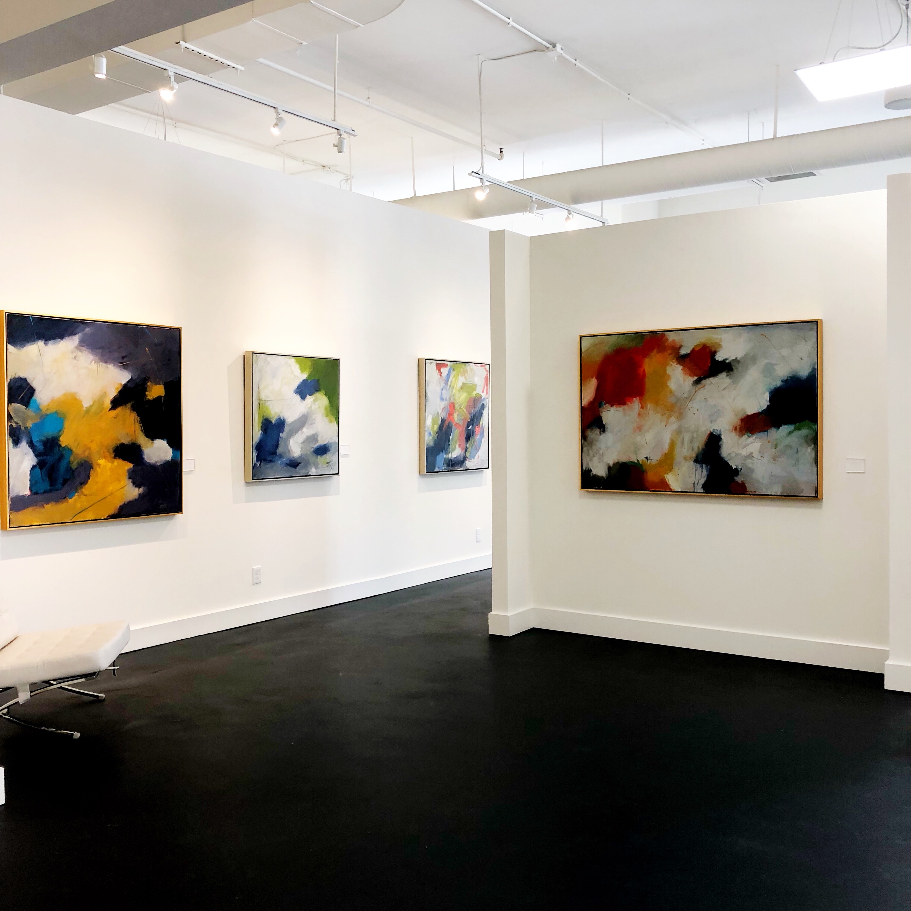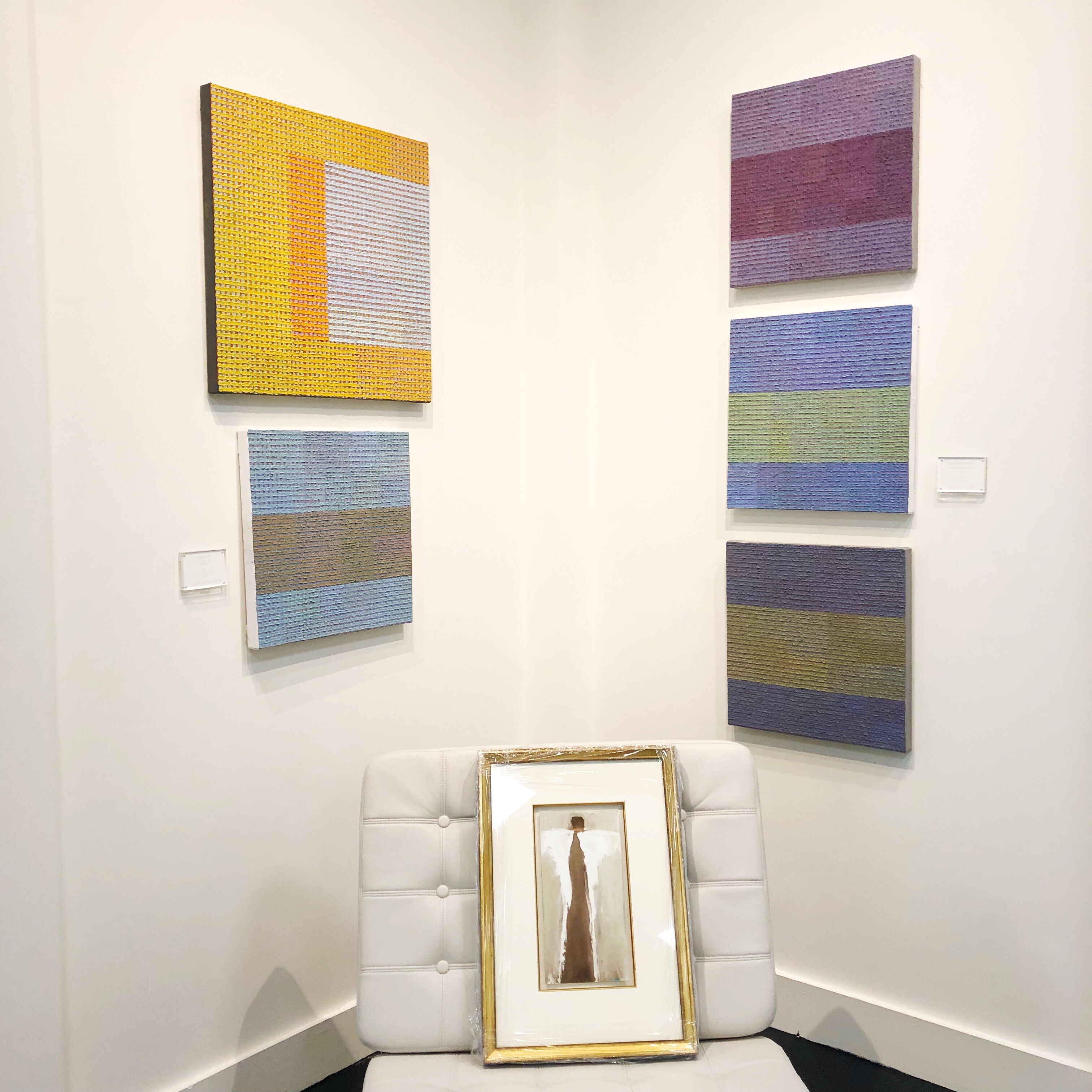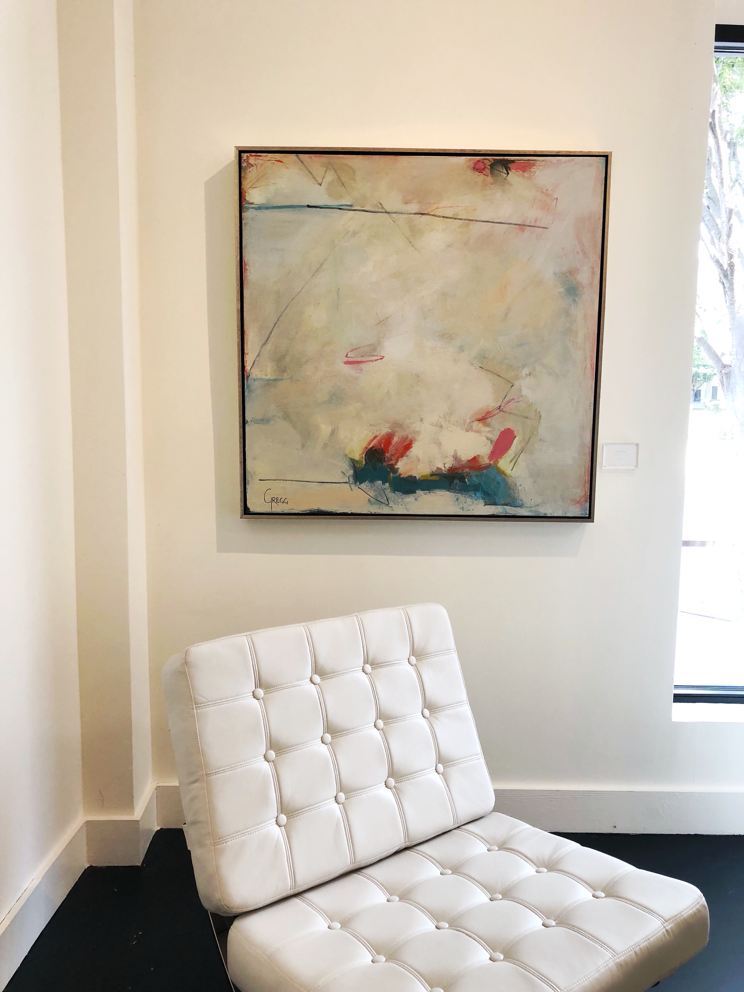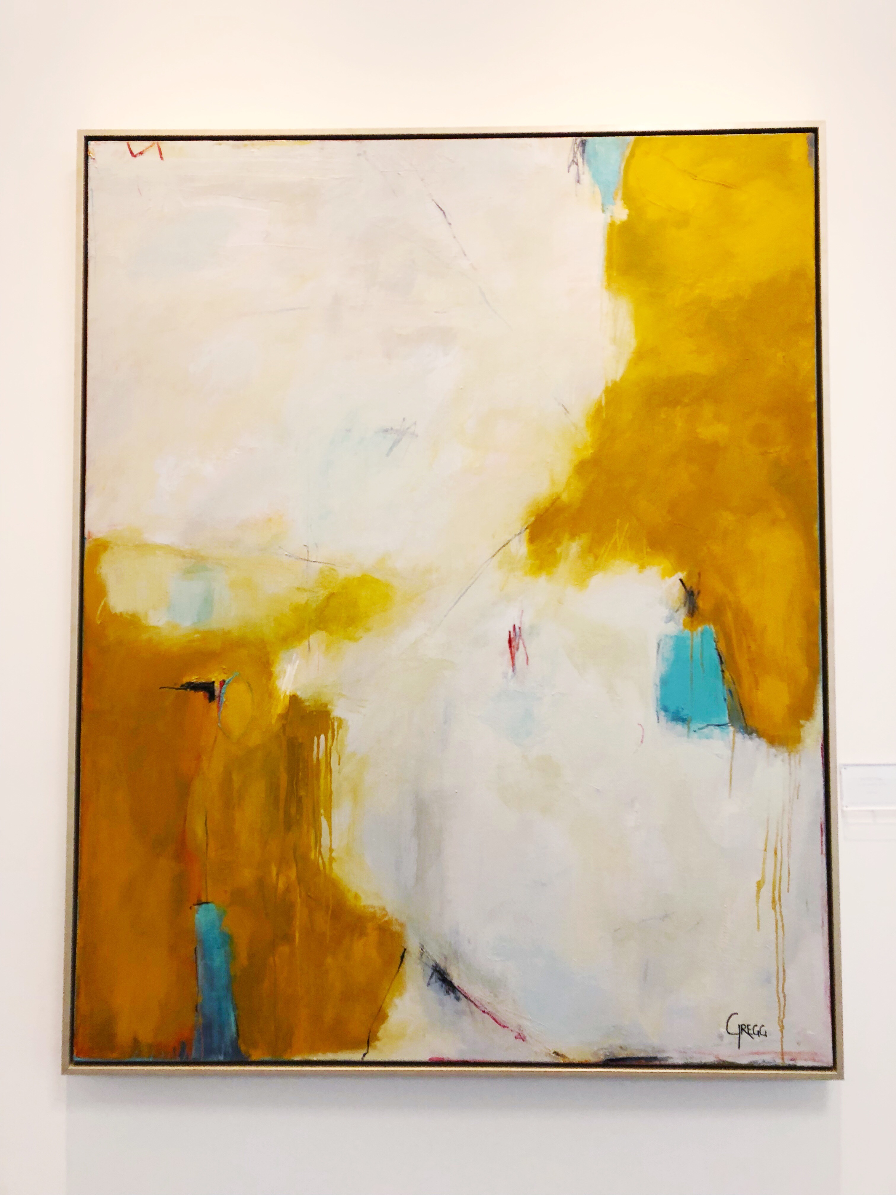 The front room was filled with the visually stunning work of artist Marcy Gregg, and we were thrilled to see her latest pieces. We saw a few of them before they made it to the gallery while visiting her studio in June. Viewing Marcy’s work is truly an emotional experience and her pieces clearly show her love of color and line.