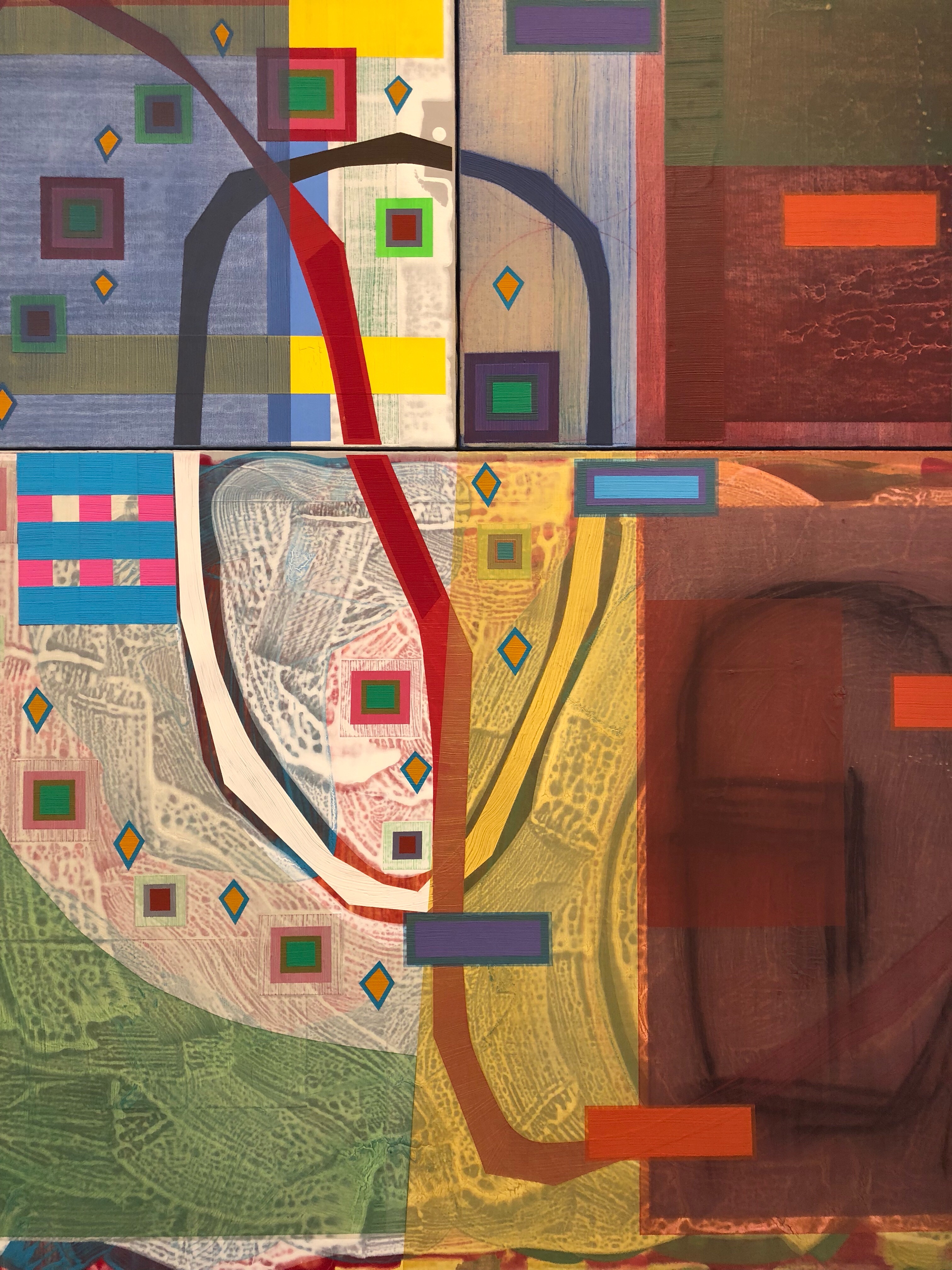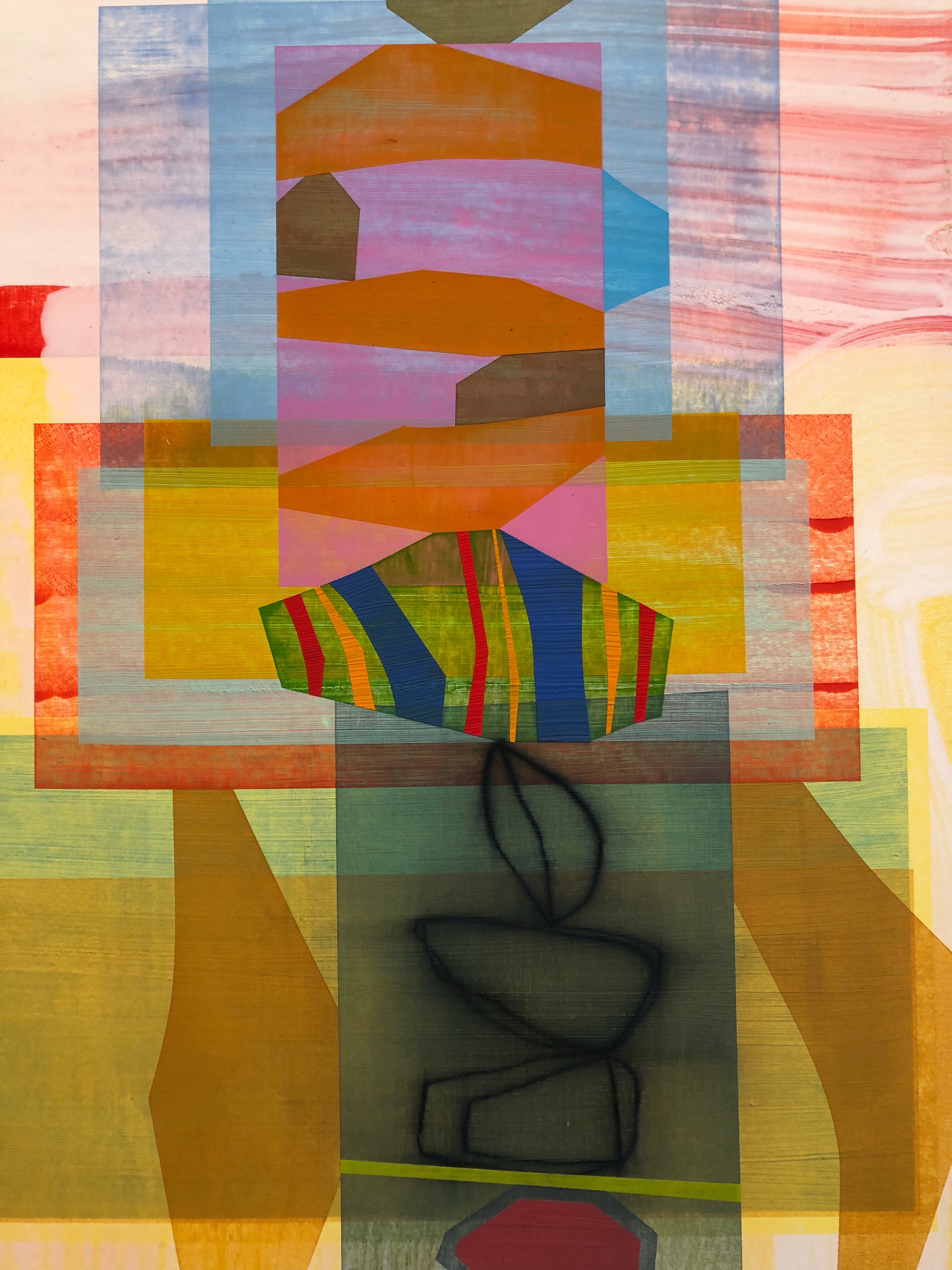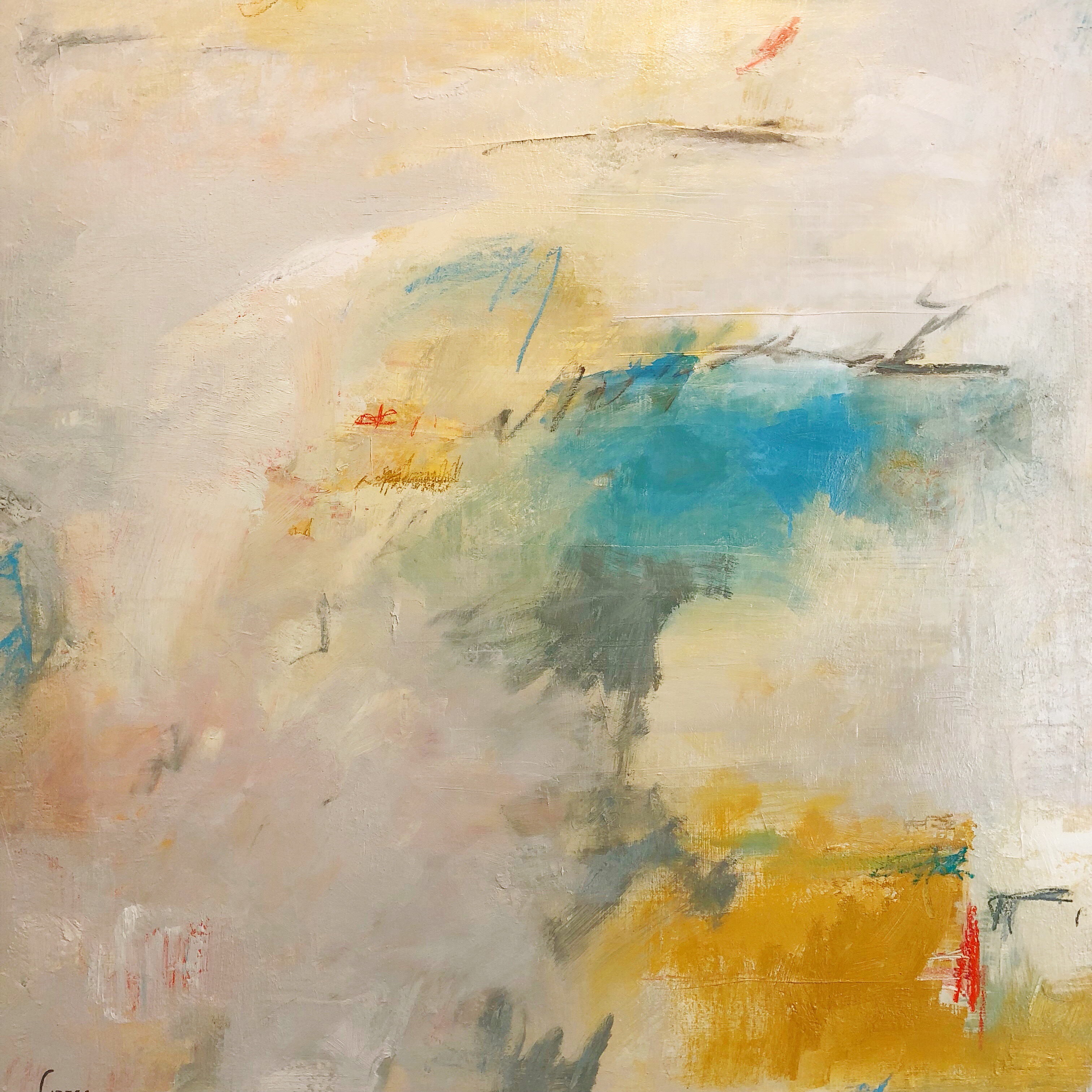 Jeff paints with oil and wax mediums, on canvas, gessoed hardboard, and paper. He is able to create multiple layers of translucent colors, and through the process of catching, distressing, and dissolving, he captures depth and feeling within the painting. With each painting, Jeff begins with no end game in mind. He allows the painting to develop to see where it leads him. – Anne Neilson Fine Art Gallery