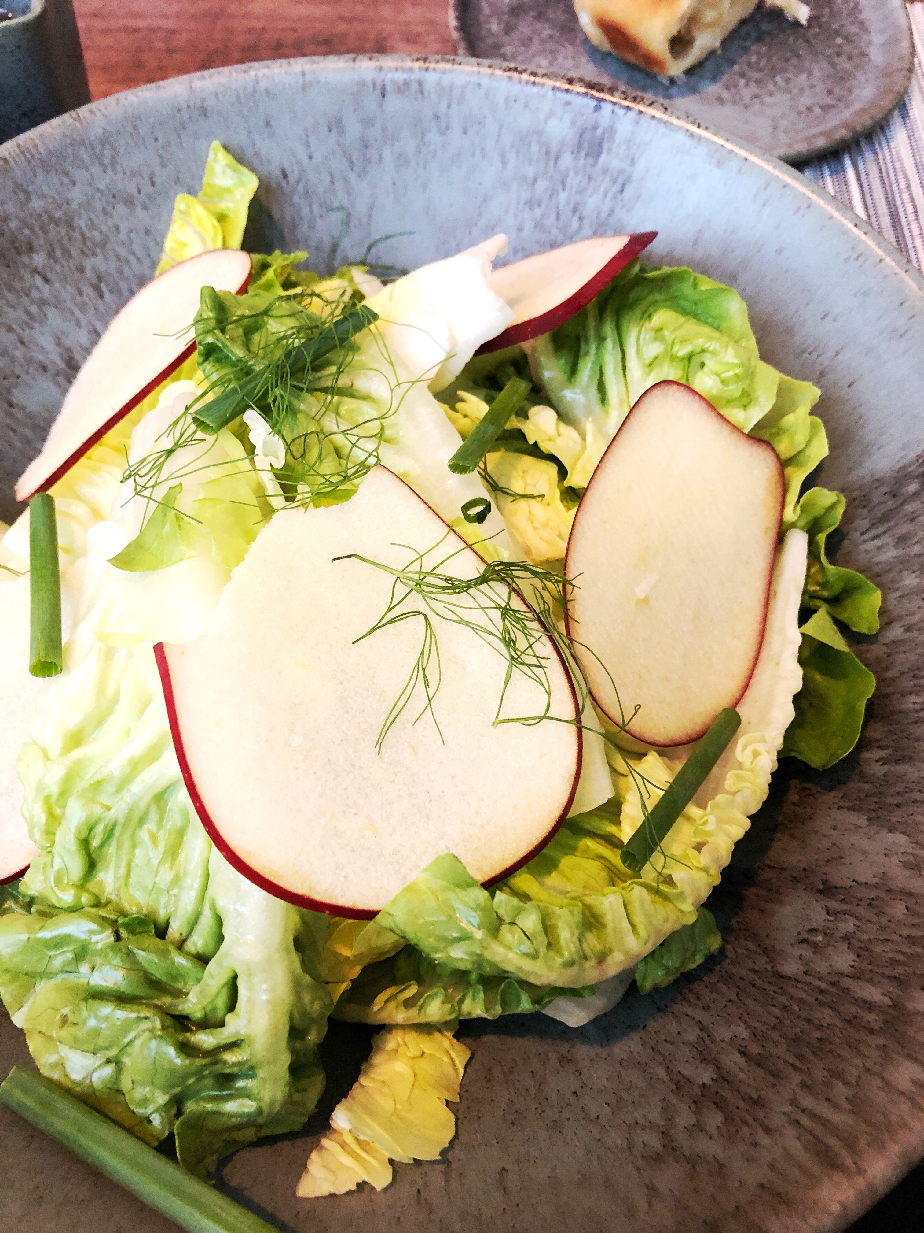 After our bread, we split a Little Gem Salad. There’s plenty to share between two people, and all of the items on the menu from the small plates to the large plates are meant to be shared.