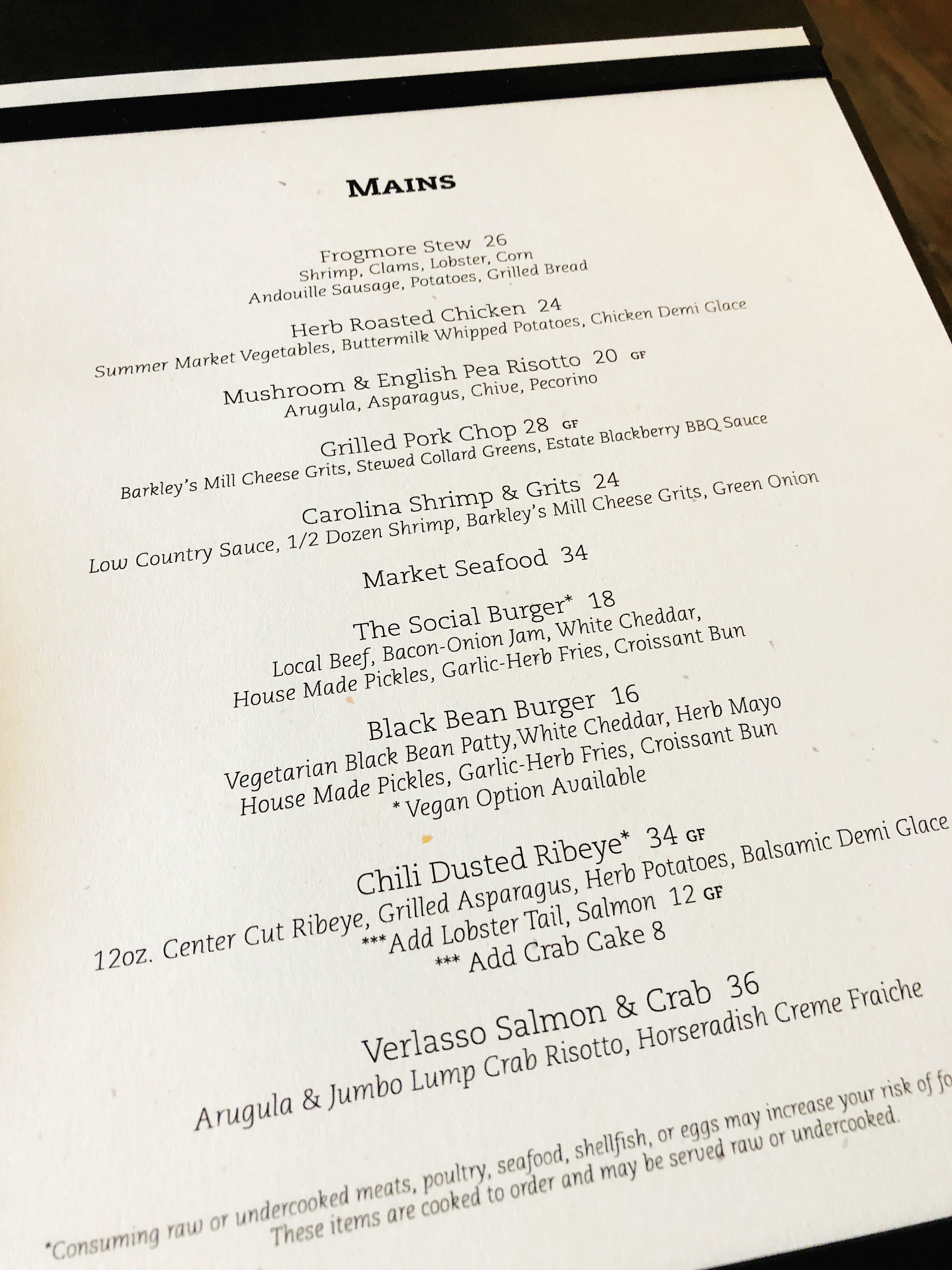 The Village Social, located in Antler Village and connected to Village Hotel on the Biltmore Estate, is the the perfect place to enjoy a bite to eat. When we arrived just prior to our 6 o’clock reservations most of the tables were already full and you could already smell delicious aromas wafting from the nearby kitchen.