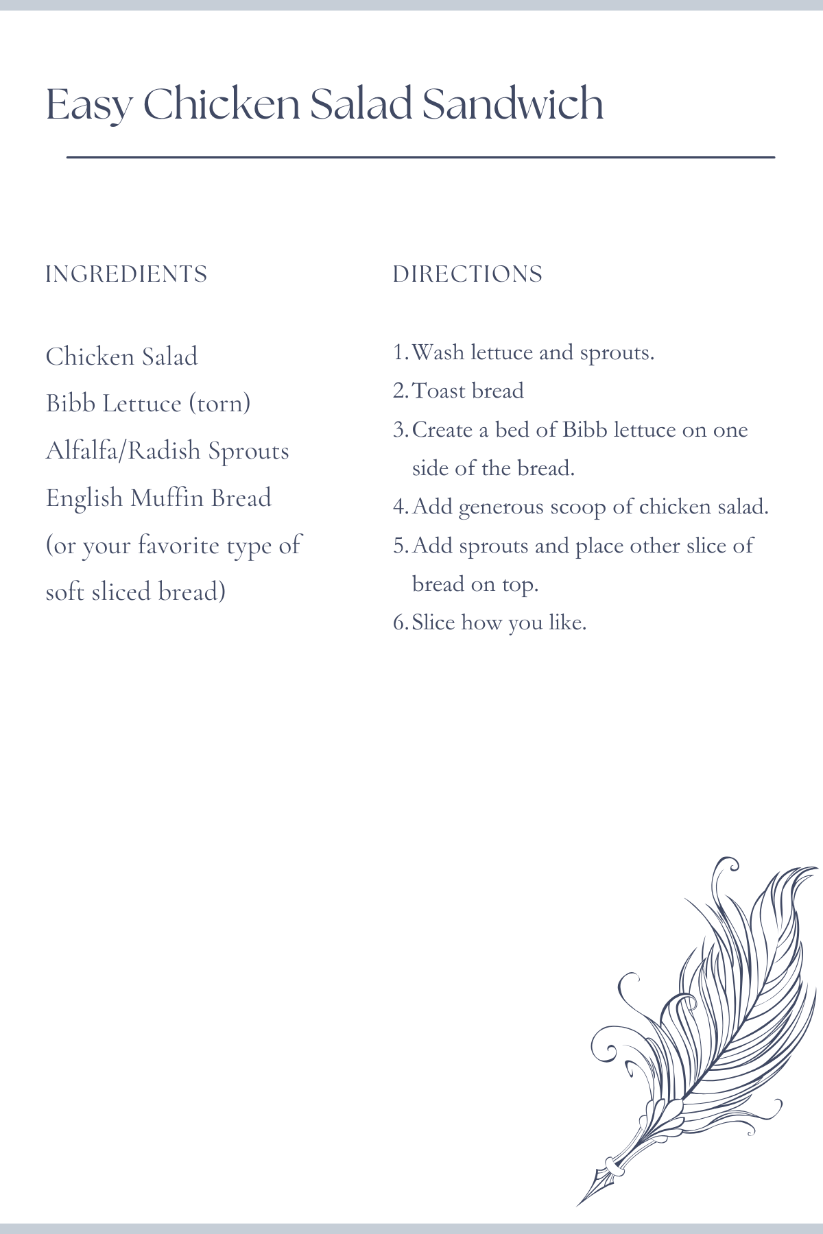 From today’s post, you can see what decision I made. I headed to my local Earthfare to pick up some of their chicken salad (which I love because it’s delicious and dairy-free). I sorted through the sprouts they had on hand, which were all the usual suspects, but I went for the alfalfa/radish sprout blend and a tub of ready-to-go Bibb lettuce. While you use any of your favorite lettuce varieties for this sandwich, I just went with my personal favorite.