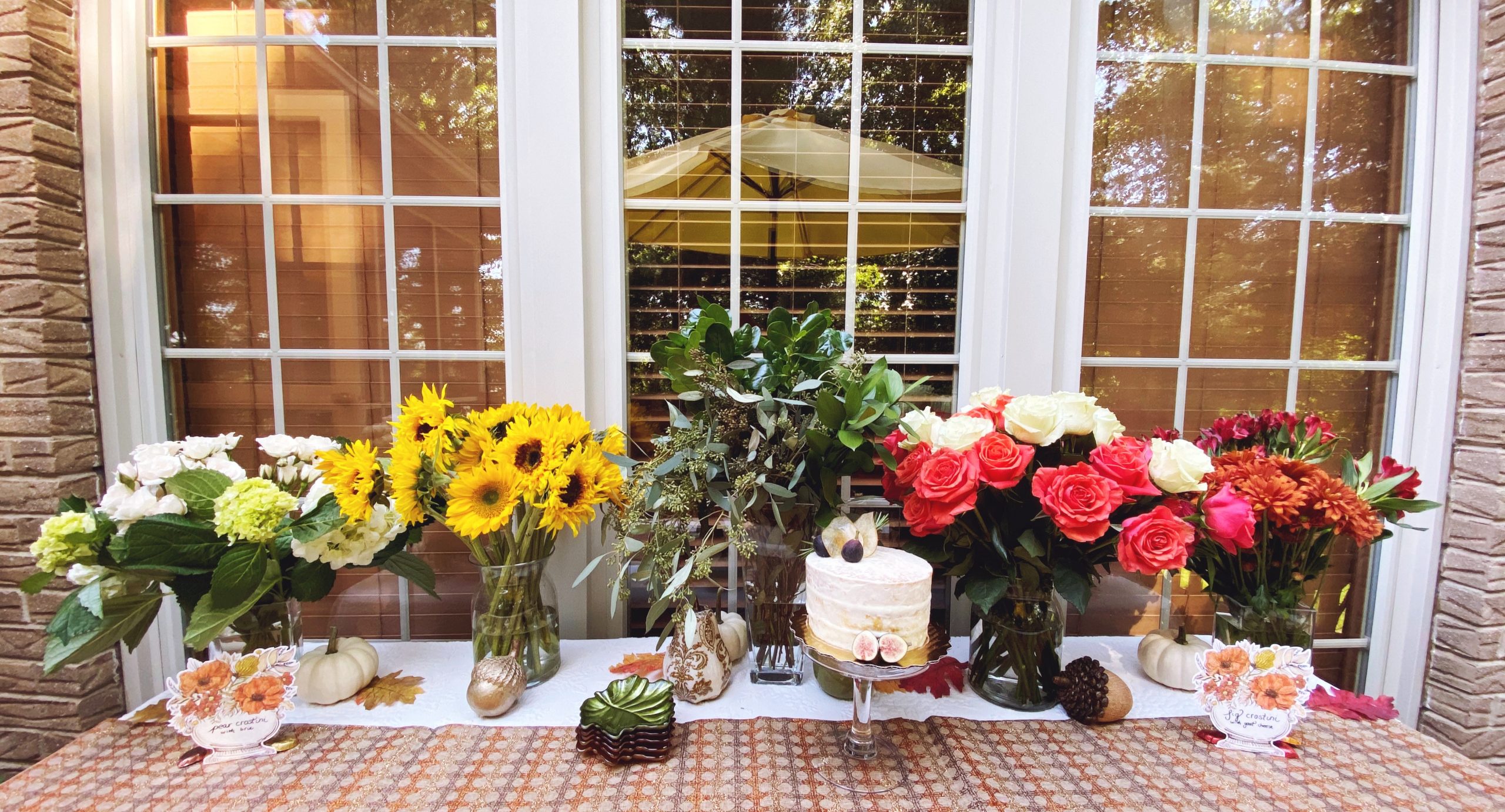 In the weeks prior to the soiree, we were thinking up what florals we wanted for our flower bar (because sending guests home with a flower arrangement they’ve created is such a fun way to remember the event.) The fact that that we wanted to get a naked cake and decorate it ourselves, and what delicious items we would serve on our fall cheese board.