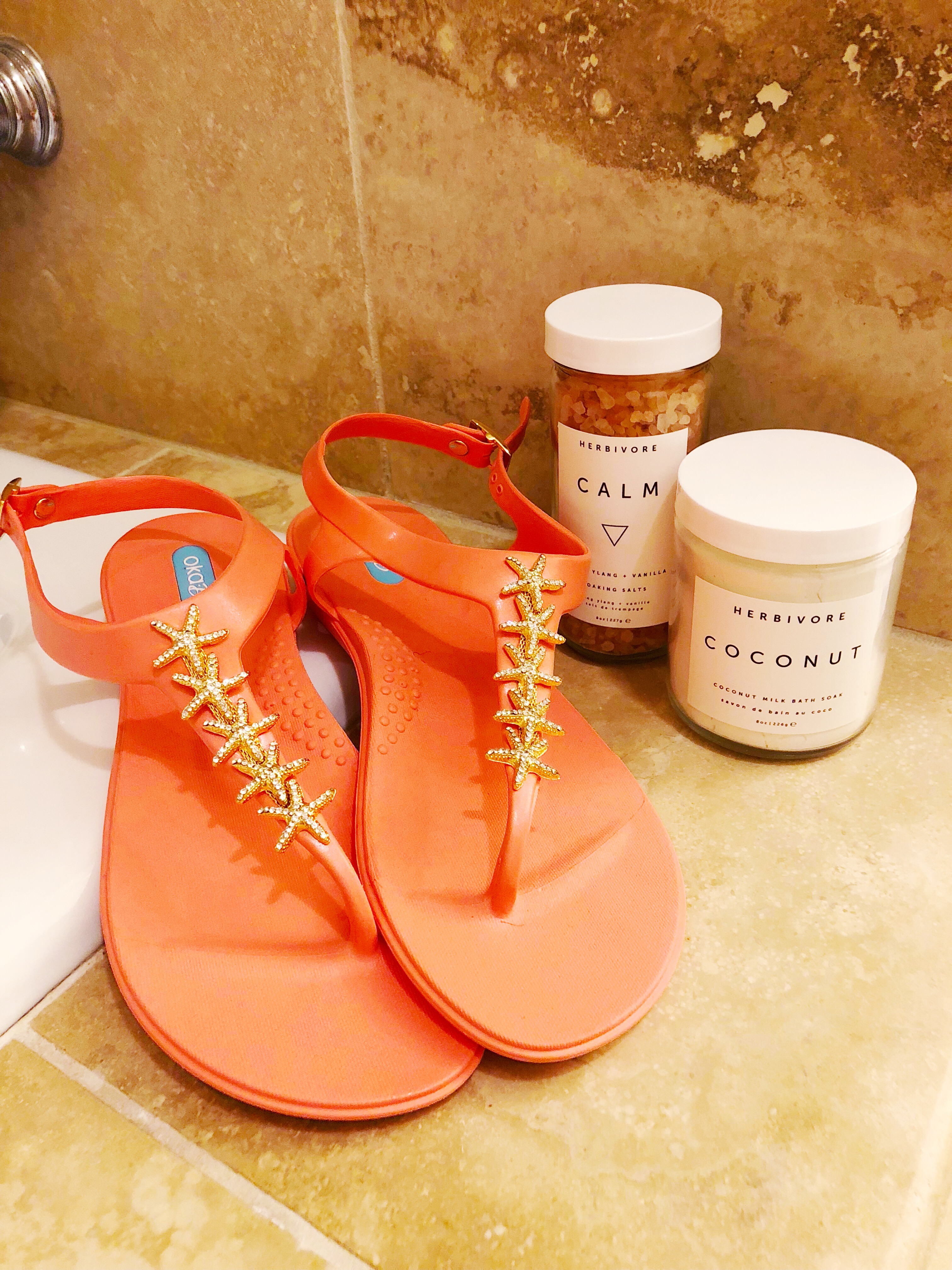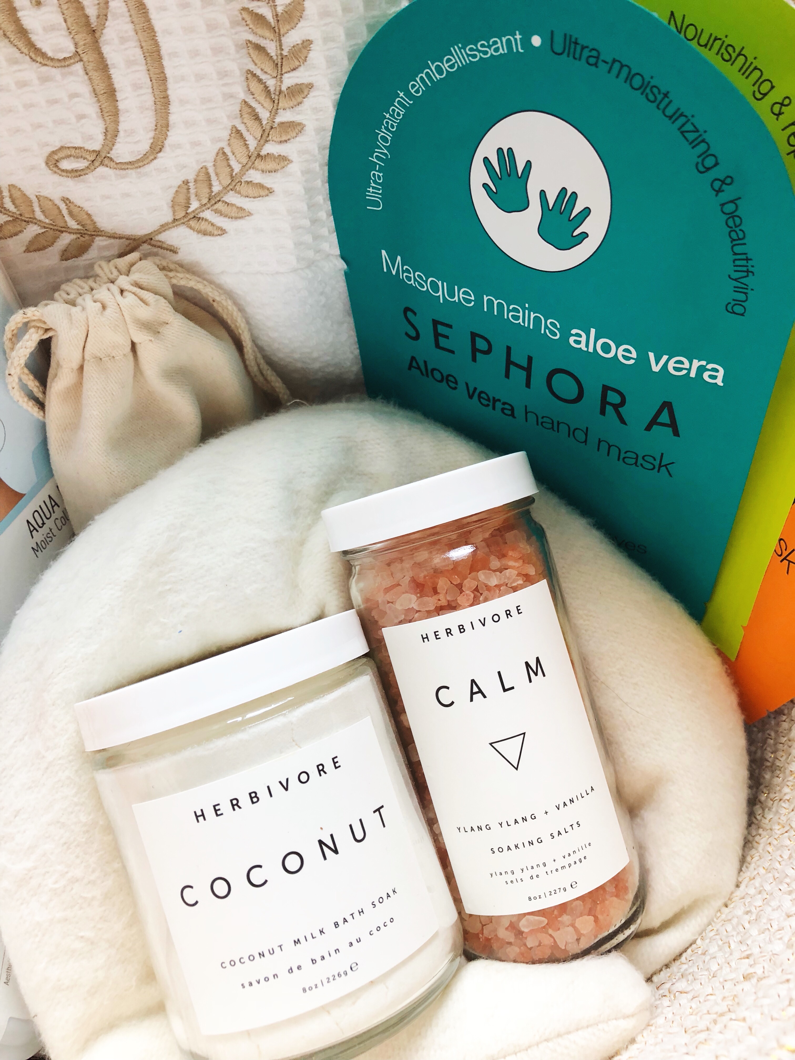 For the last part of our spa day we headed over to the tub for our foot soak… I’d brought along two options from one of my favorite brands, Herbivore. The Calm Soaking Salts with Vanilla and Ylang Ylang, and the Coconut Milk Bath Soak which won hands down.