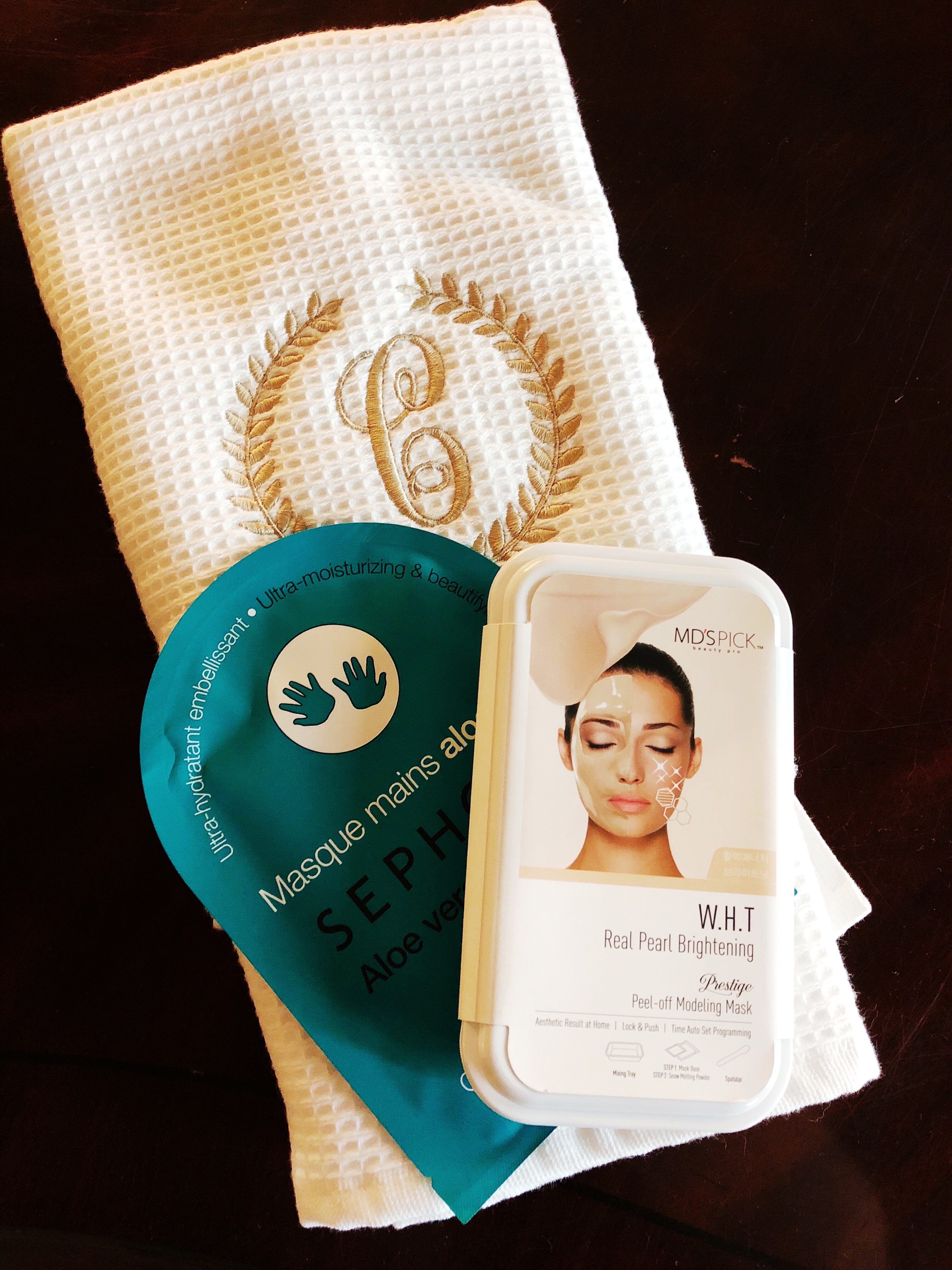While we waited for our face masks to dry, we decided to try out the hand masks… I went with the Aloe, Avocado and Argan hand masks by Sephora, but if you’re interested in foot masks as well, they have a lavender one that sounds heavenly!