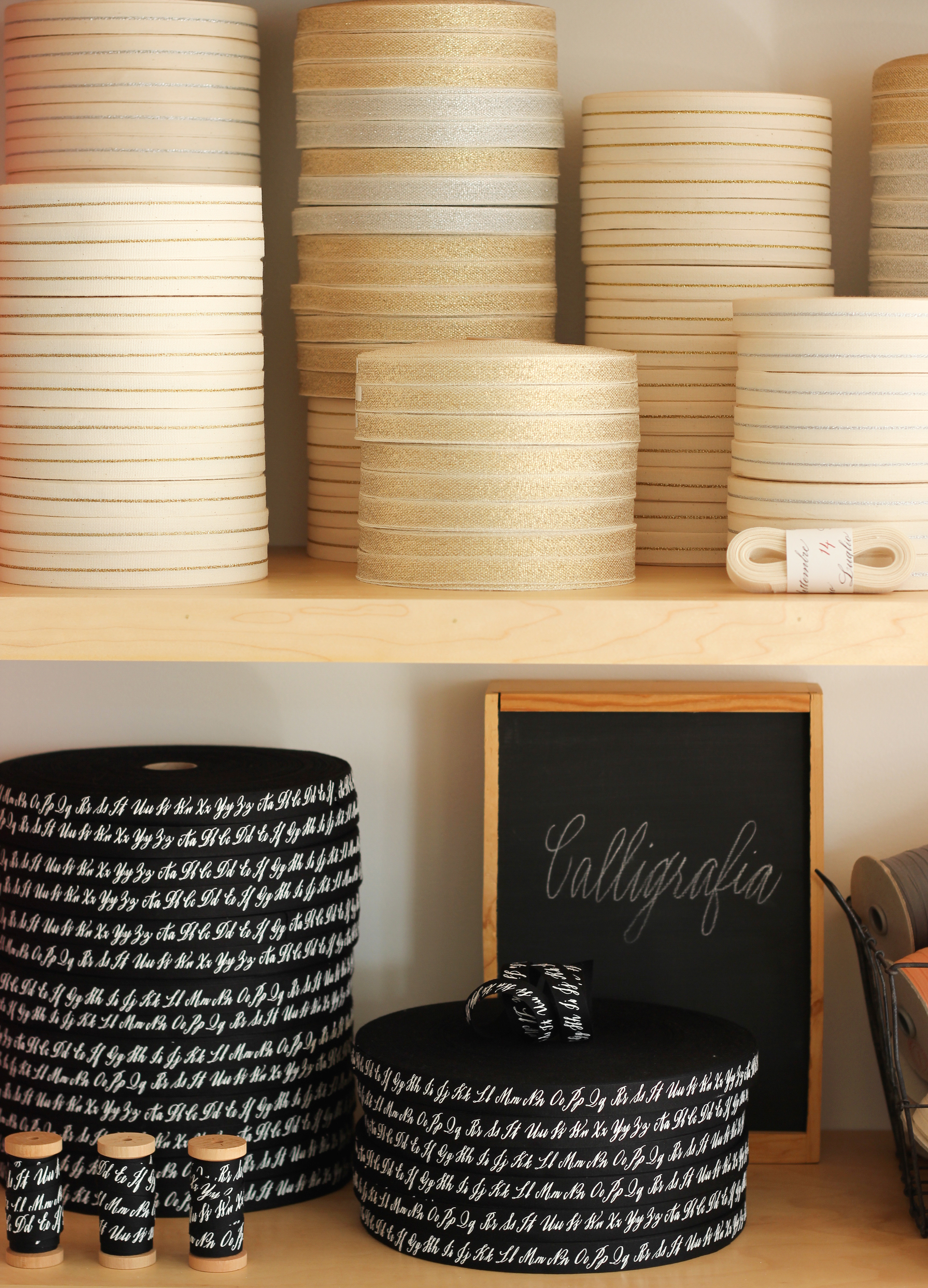 We kind of met each other through Instagram and then she taught a workshop here. She’s creative and sweet and we worked well together, so we decided to create a ribbon and it’s been very popular. It’s printed in Italy on the cotton ribbon that we already sell which is a collaboration of both Maybelle’s beautiful calligraphy and our ribbon.