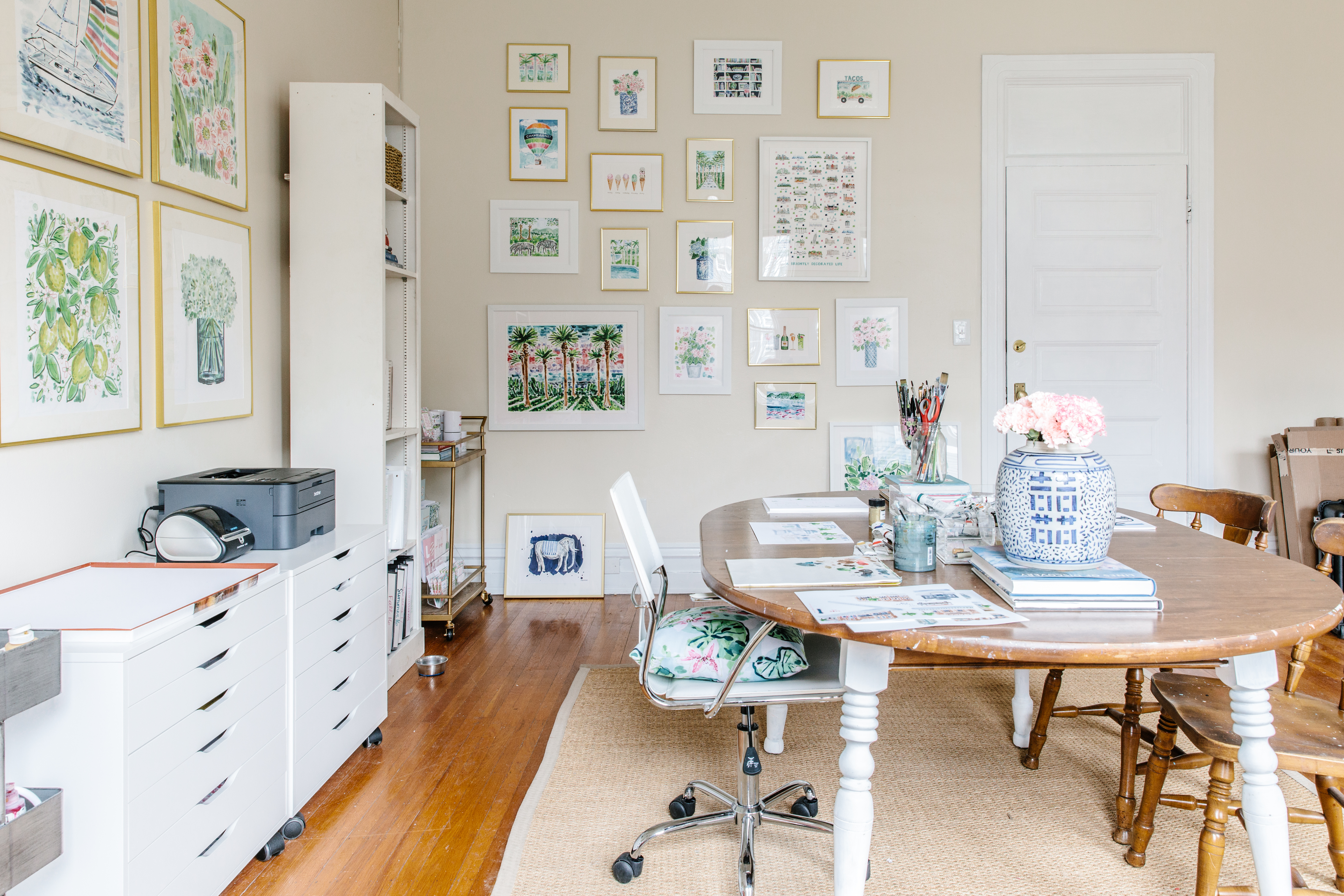 Every day is different! I usually get to my studio around 8 am with a cup of iced coffee in hand. I typically aim to split the day in half: focusing on the business/marketing aspects in the morning, and then shift to any art projects I have going on in the afternoon. I’ll walk around the block whenever I feel stuck to clear my head and usually leave around 4-5ish depending on how busy I am/what is going on. Sometimes I’ll spend all day working on one thing (a commission, product launch, marketing campaign, etc) and sometimes I end up working until the late evening.