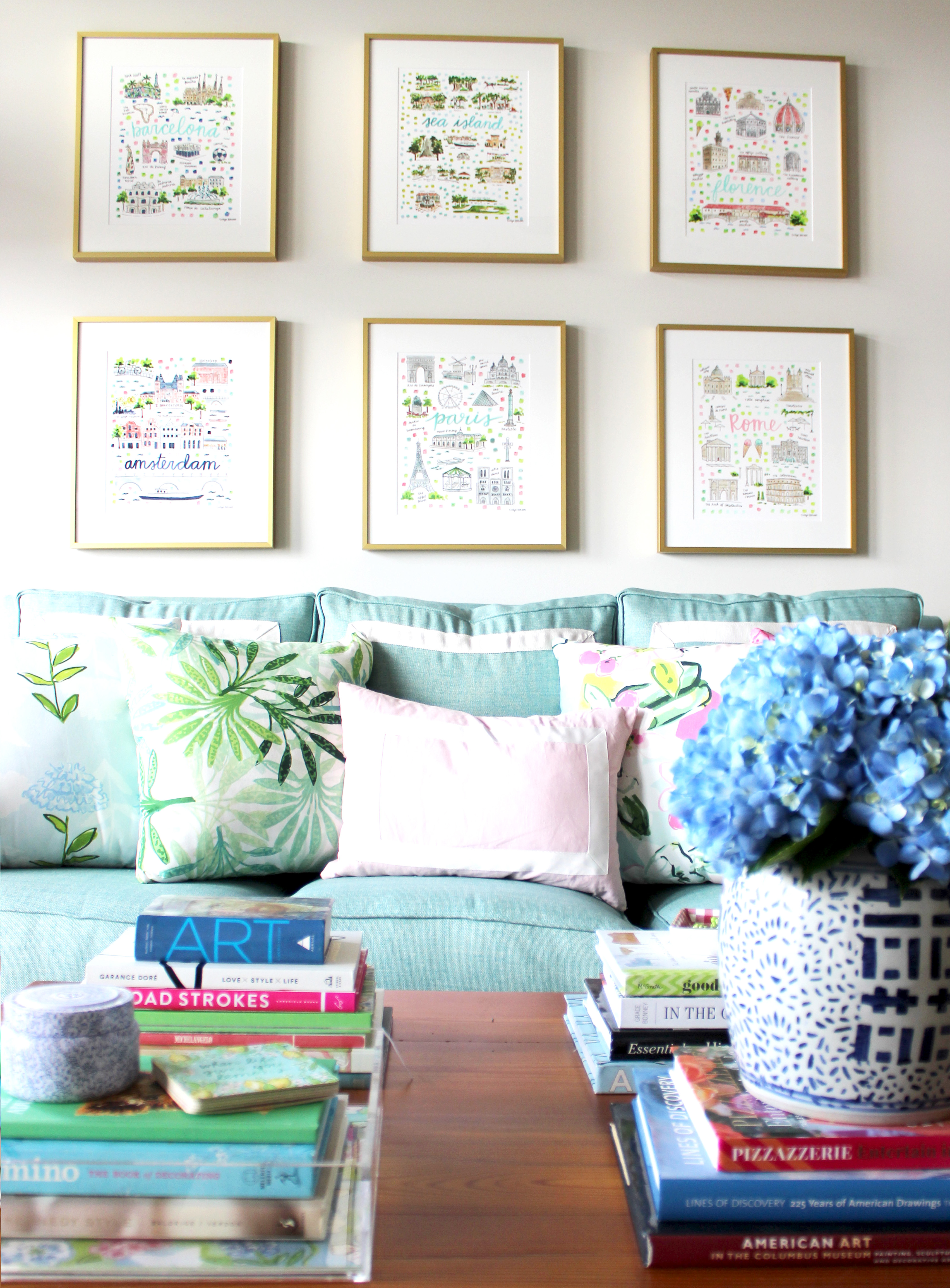 I have a lifelong love for pattern design and have been wanting to do more with textiles. Last year, I took a few Adobe Illustrator classes and pattern design classes through SkillPop and Skillshare to learn more about it. From there, I started turning my original art into repeating patterns. I spent over a year perfecting this process and getting it right. I decided to start with a pillow line and will hopefully grow to more textiles from there. The debut pillow collection consists of 15 pillows, each of which was created using my original gouache and watercolor pieces. They all have similar colors so you can have fun mixing and matching! I’m so excited about how they turned out!