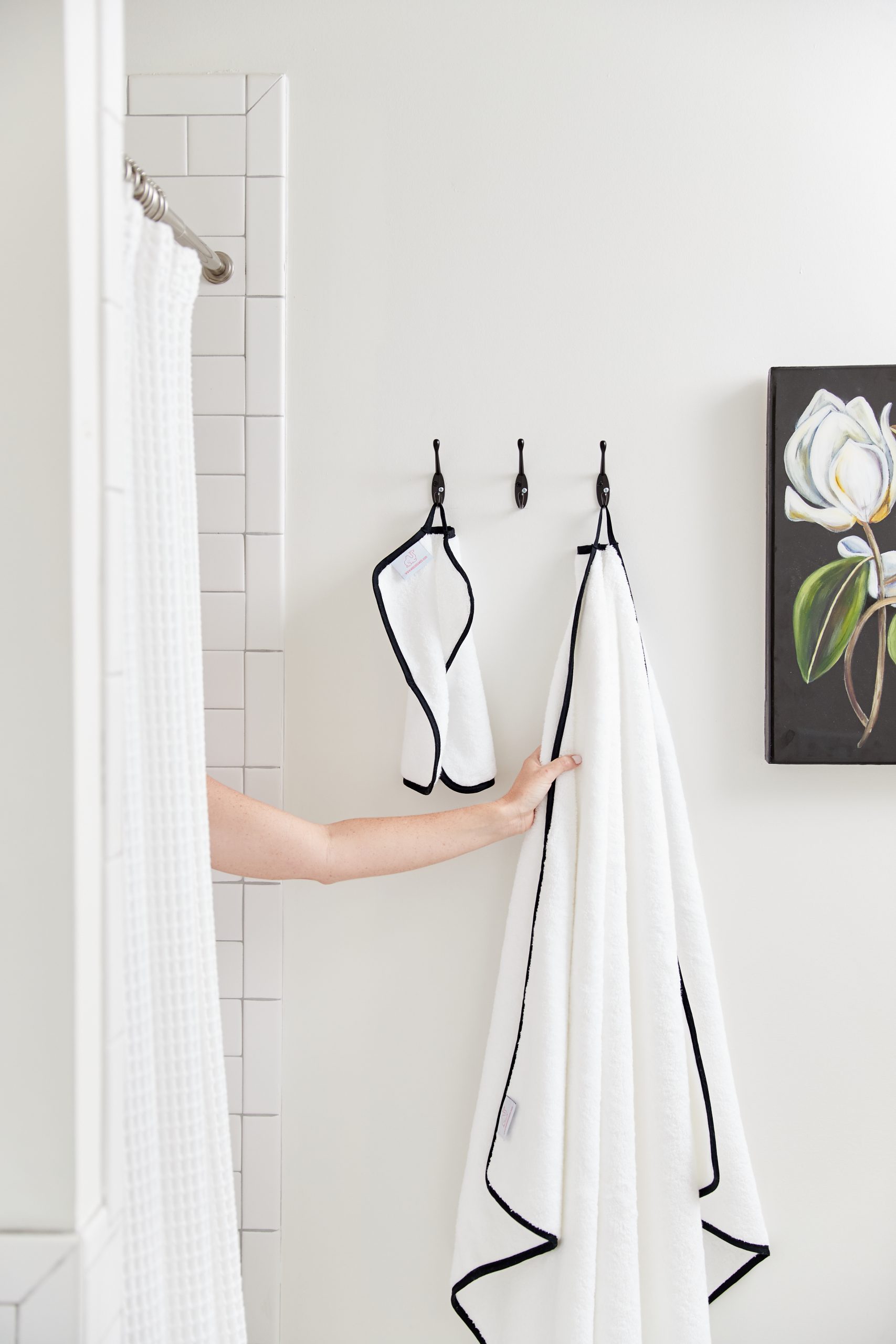 We were incredibly thoughtful about not only about towel construction, but also aesthetics. We rounded the corners for a more elevated design, and included a discreet hanging hook for more effective drying. We also offer seamless online customization so that our customers can create a towel unique to them. We truly believe we created the perfect towel, and hope it brings as much joy to our customers as it does to us.