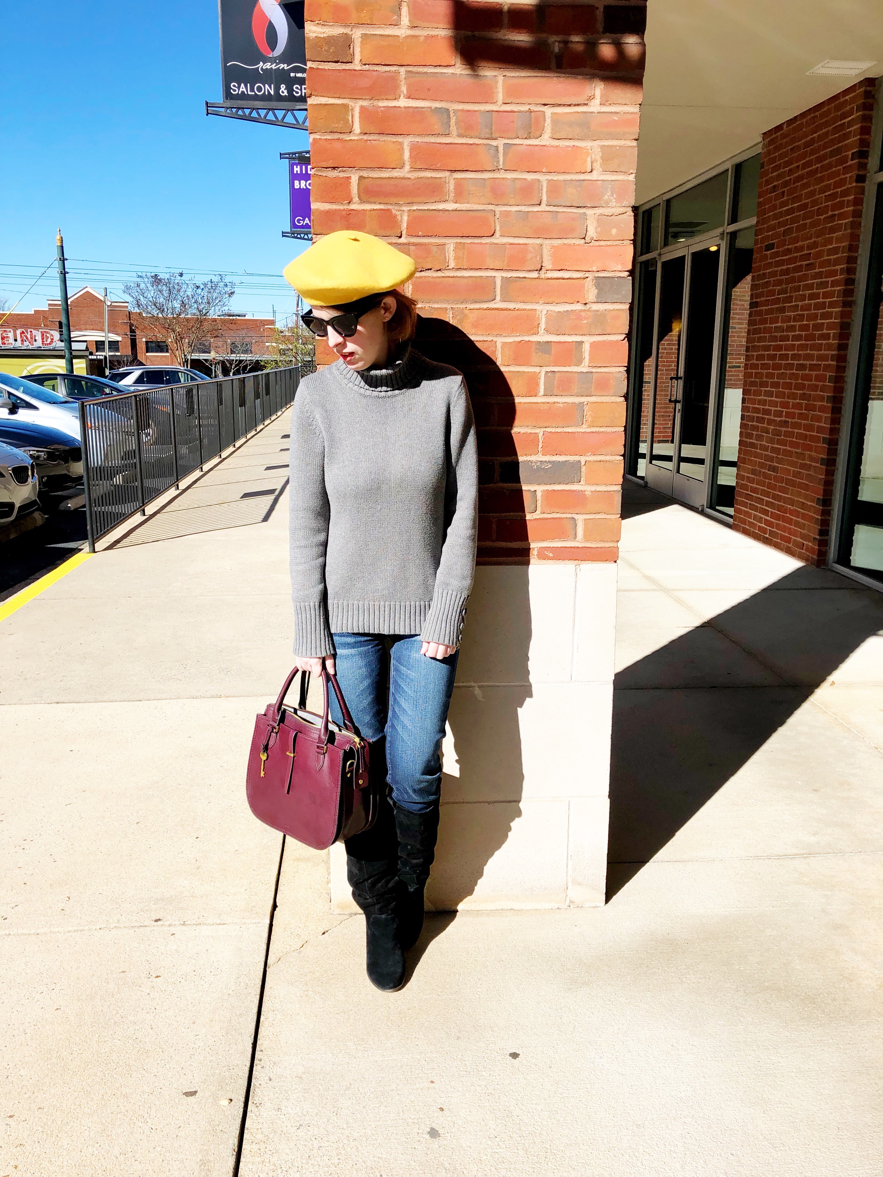 Outfit Details: Beret (Topshop) here | Turtleneck Sweater (Loft) old, similar here | Ne(X)t Level Skinny Jean (American Eagle) here | Boots (Sole Society) old, similar here | Bag Ryder Stachel (Fossil) here