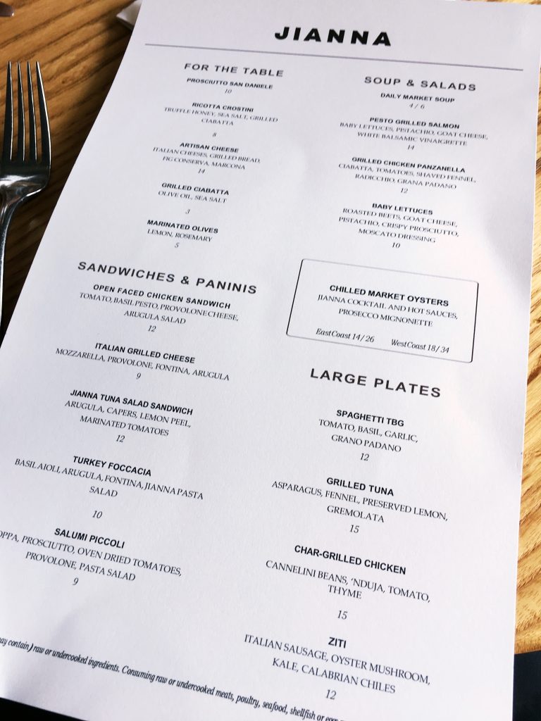Jianna’s is open for lunch on Saturdays and Sundays from 11-3