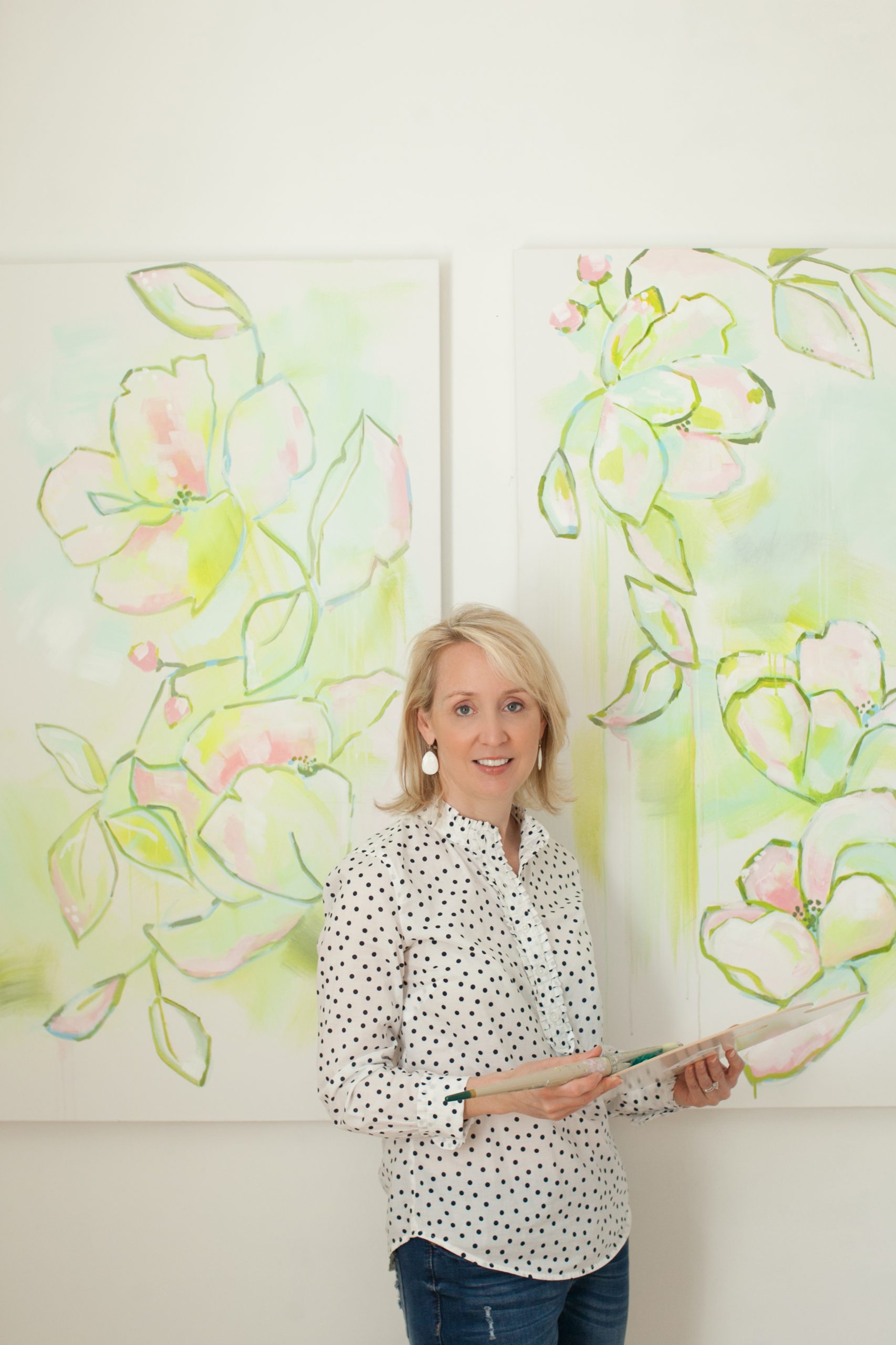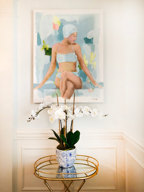 Kristin Cooney is an Atlanta-based artist who finds a balance between practicing dentistry and creating beautiful artwork for the home. Using a combination of acrylics and oils, Kristin creates beautiful florals, colorful abstracts and her figure series (including her latest series, Bathing Beauties) have serious vintage Vogue vibes.