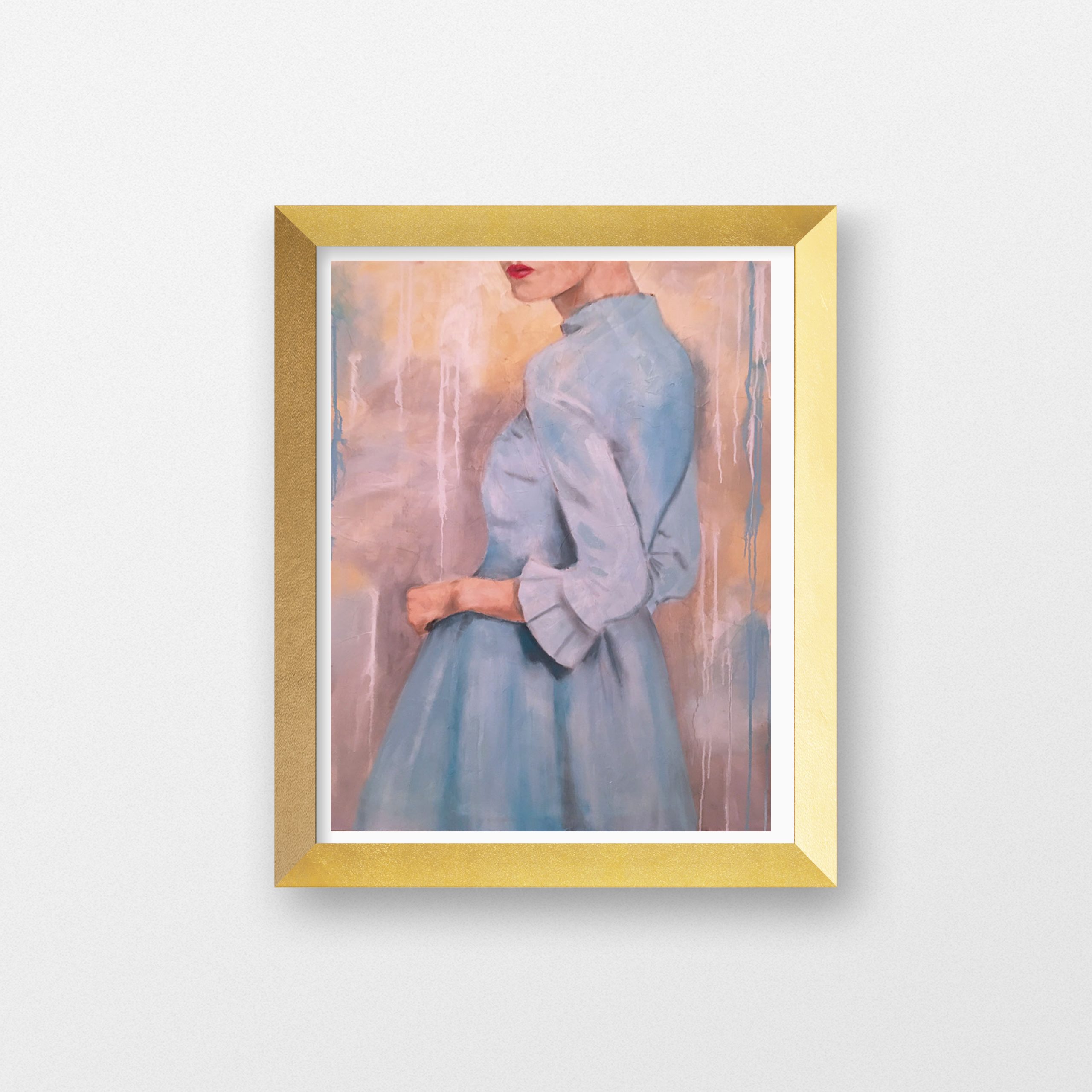 I’m constantly looking to vintage Vogue photos and fashion from the mid-century era for inspiration. People used to dress up for everyday things back then and I want to inject some of that elegance into homes through art. My favorite figure piece is the very first one I painted titled “Maura”. She wears a light blue dress with a mandarin collar and ruffled sleeves. She’s positioned in a 3/4 turn and her lipstick is ruby red. I’ve recreated that piece numerous times for clients with Maura wearing varying colors of her timeless dress. Some clients have even asked me to have her holding a martini, which makes her even more fun!