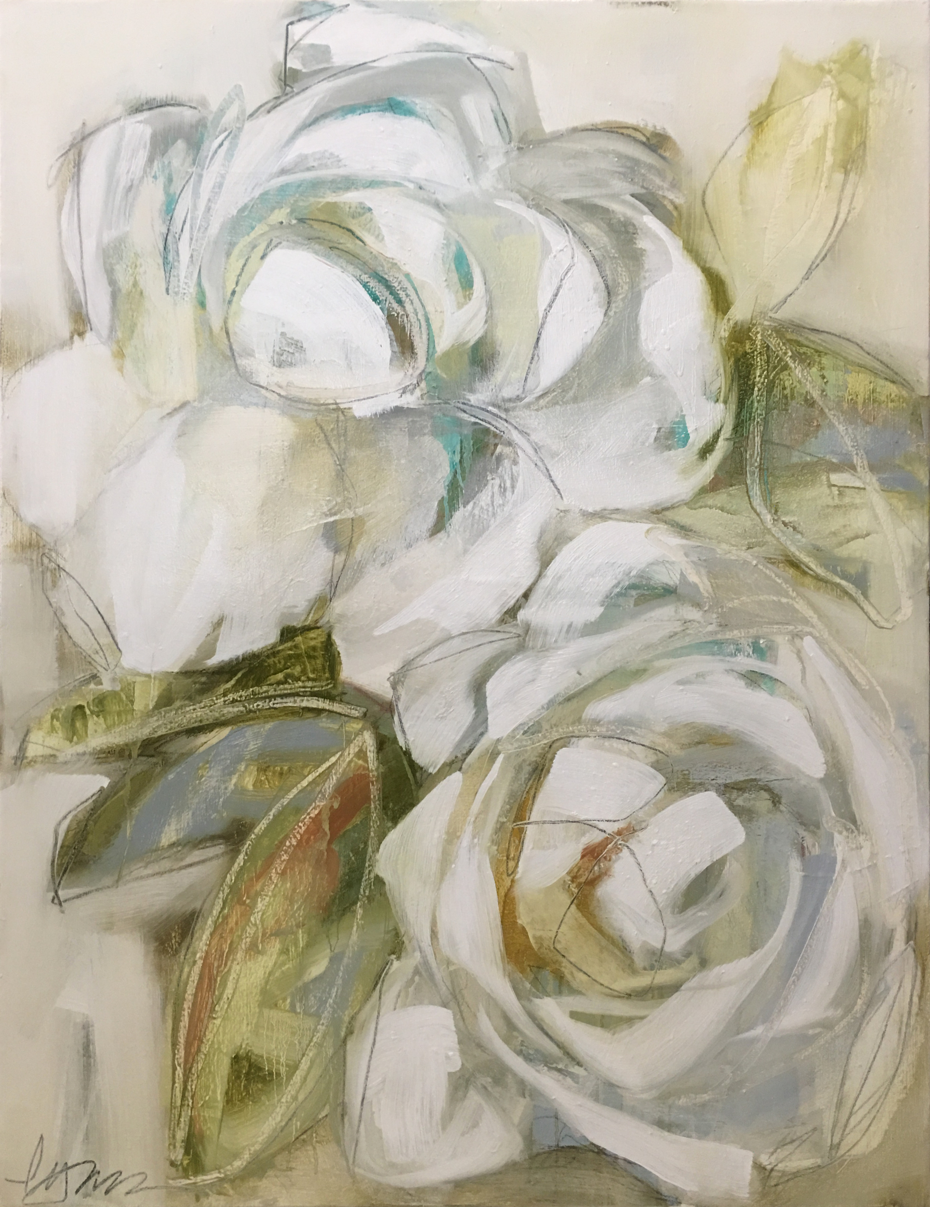 My husband and I moved from the northwest to Atlanta nearly eighteen years ago. The charm of the South, abundant sunshine, and blue skies have greatly influenced my spirit and my painting. I paint in (mostly) natural light and love to use fresh flowers when available. A trip to the botanical garden or to my local garden center is always a good source of inspiration.