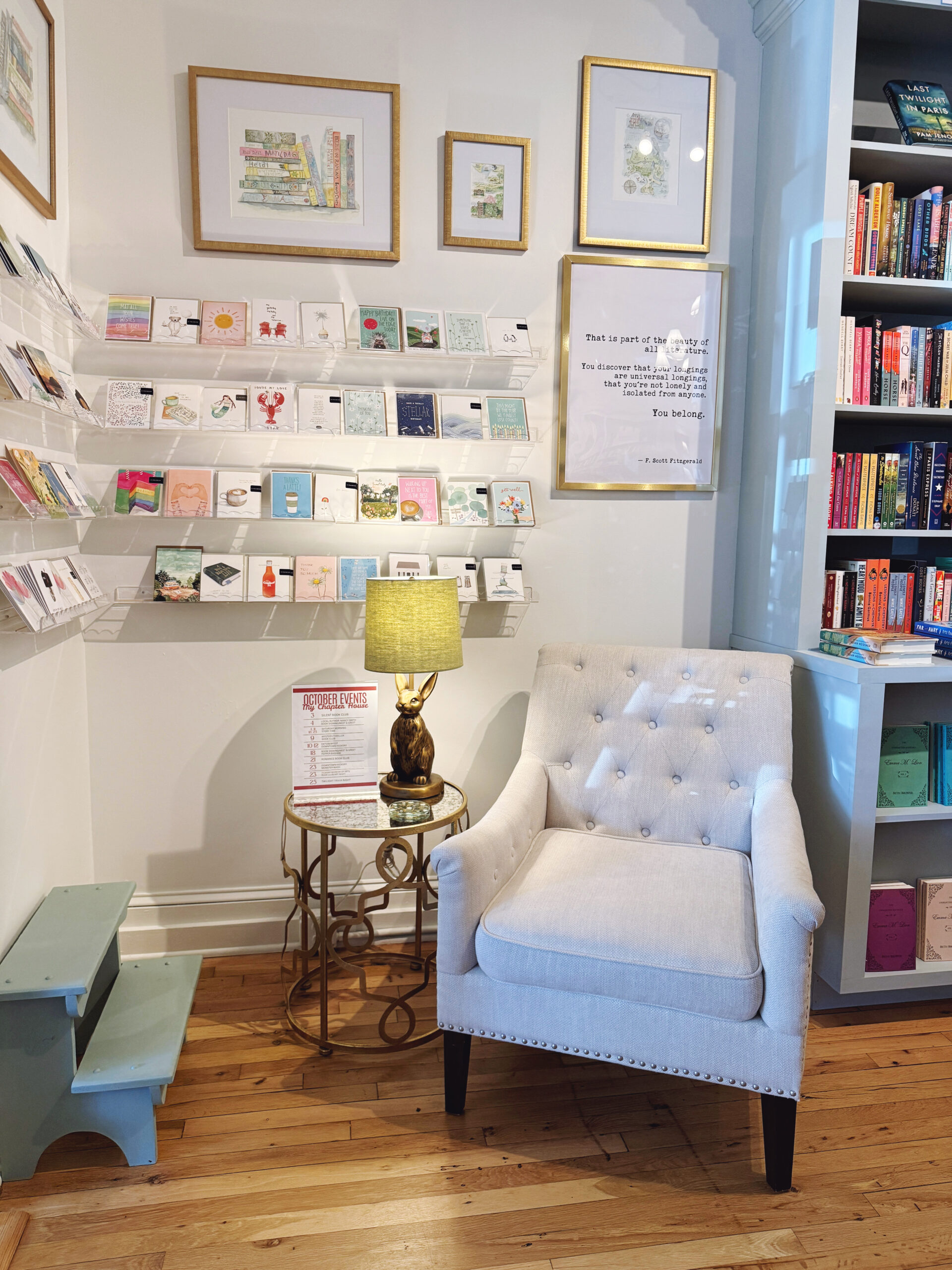 Just imagine getting to sit in one of these cozy chairs that are sprinkled around the store on one of their book club nights. You read for 1 hour, and then it’s time to mingle with your fellow booklovers.