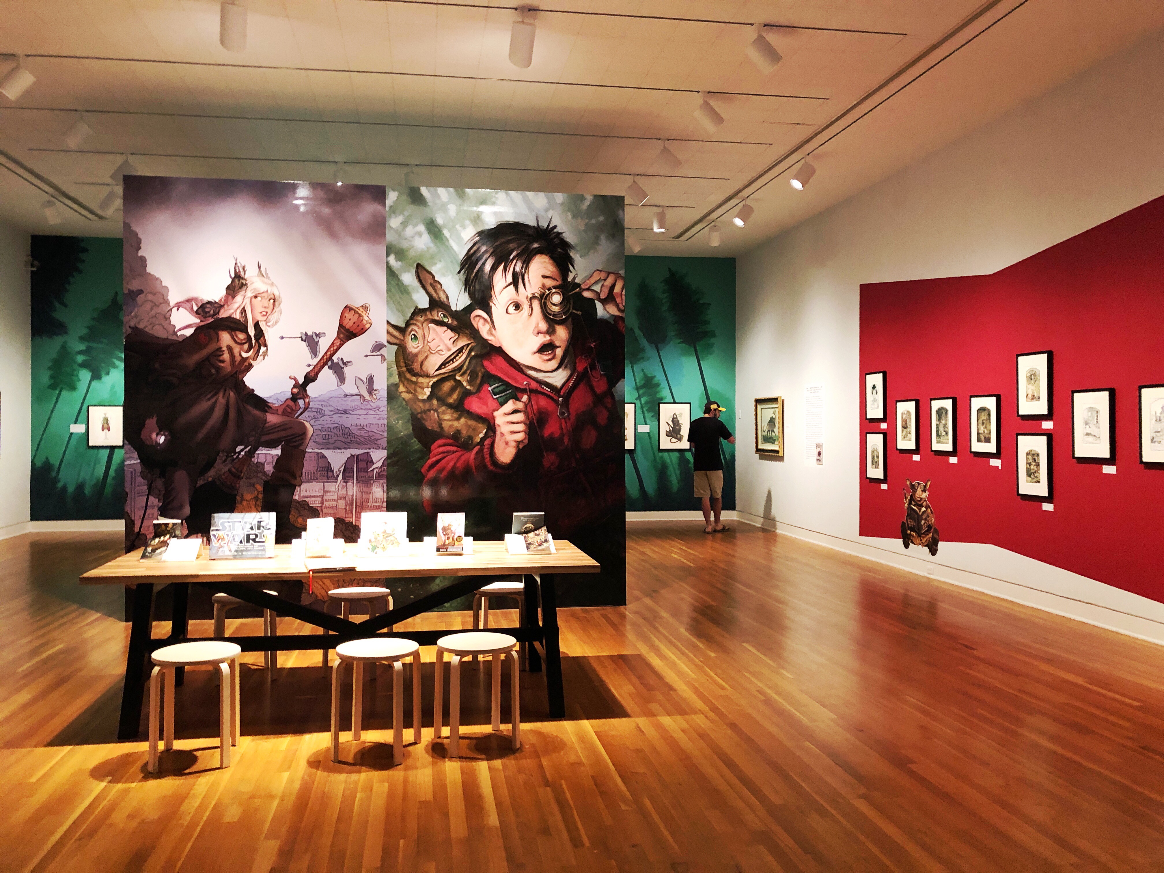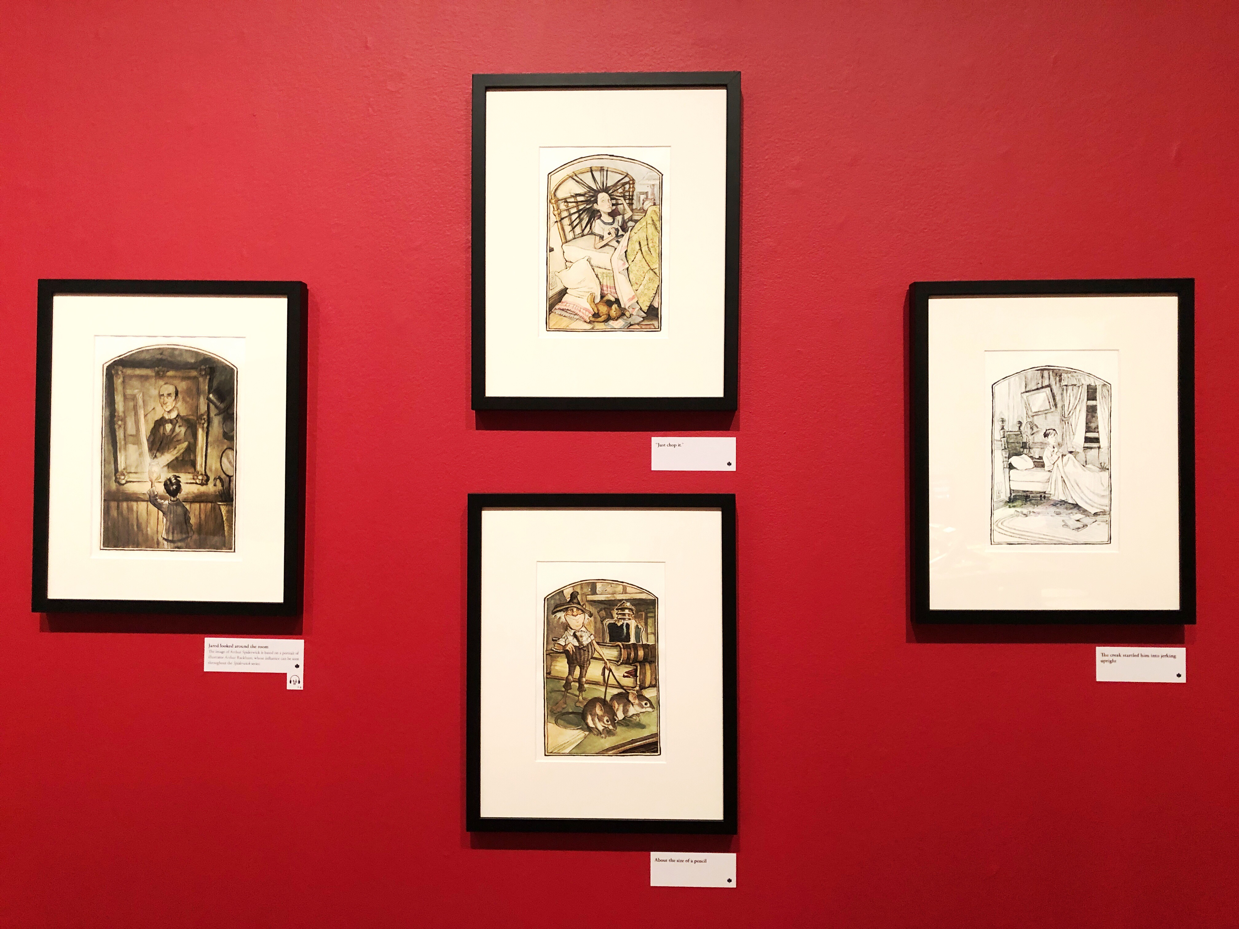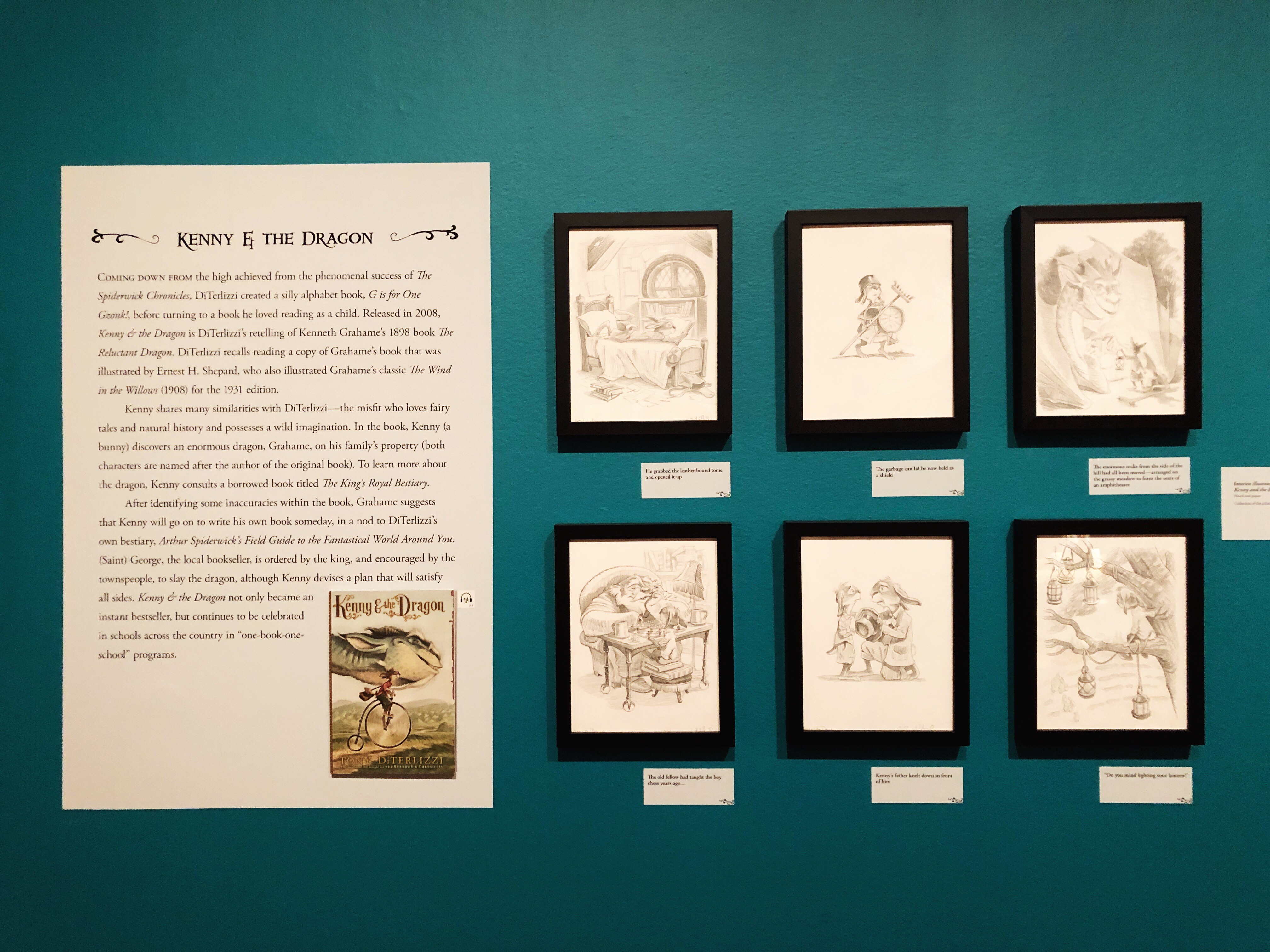 As an art lover and avid reader it was so exciting to see the different stages of Tony’s work, from pencil drawings to the finished piece. Several of the galleries had rooms that were completely made over to give a more immersive experience, with the illustrations on wallpaper that fit with the theme of each book. The exhibition covers books (The Spider & The Fly, Kenny and the Dragon, The Story of Diva & Flea, the WondLa trilogy, and The Spiderwick Chronicles) along with work from the artists early years as a designer for Dungeons & Dragons and Magic: The Gathering.