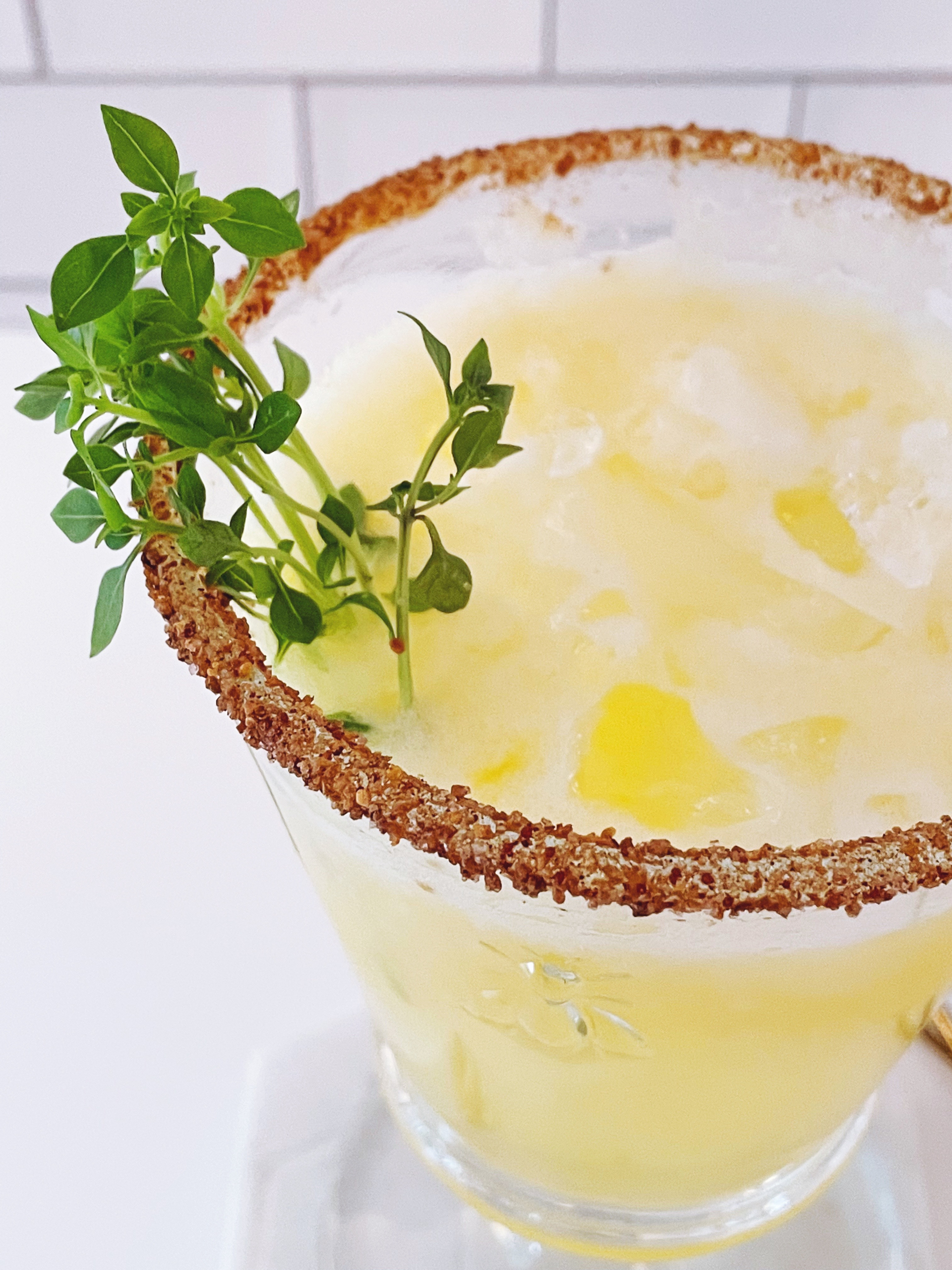 The taste of boxwood basil is very similar to traditional basil, but instead of chiffonading the leaves (which always leads to bruising in traditional basil leaves), you can simply pluck off the leaves of boxwood basil and add them to your dish or drink (which I did and let me tell you, the flavor profile is amazing!)