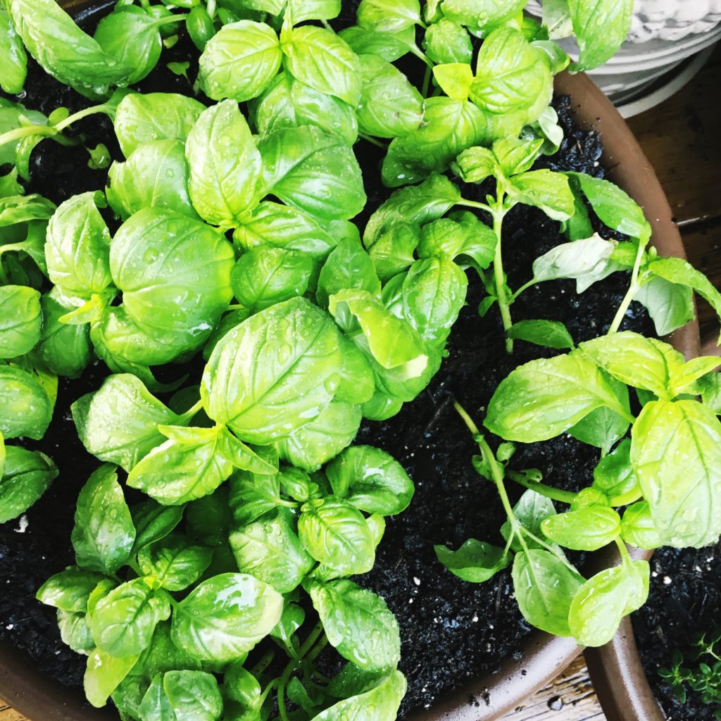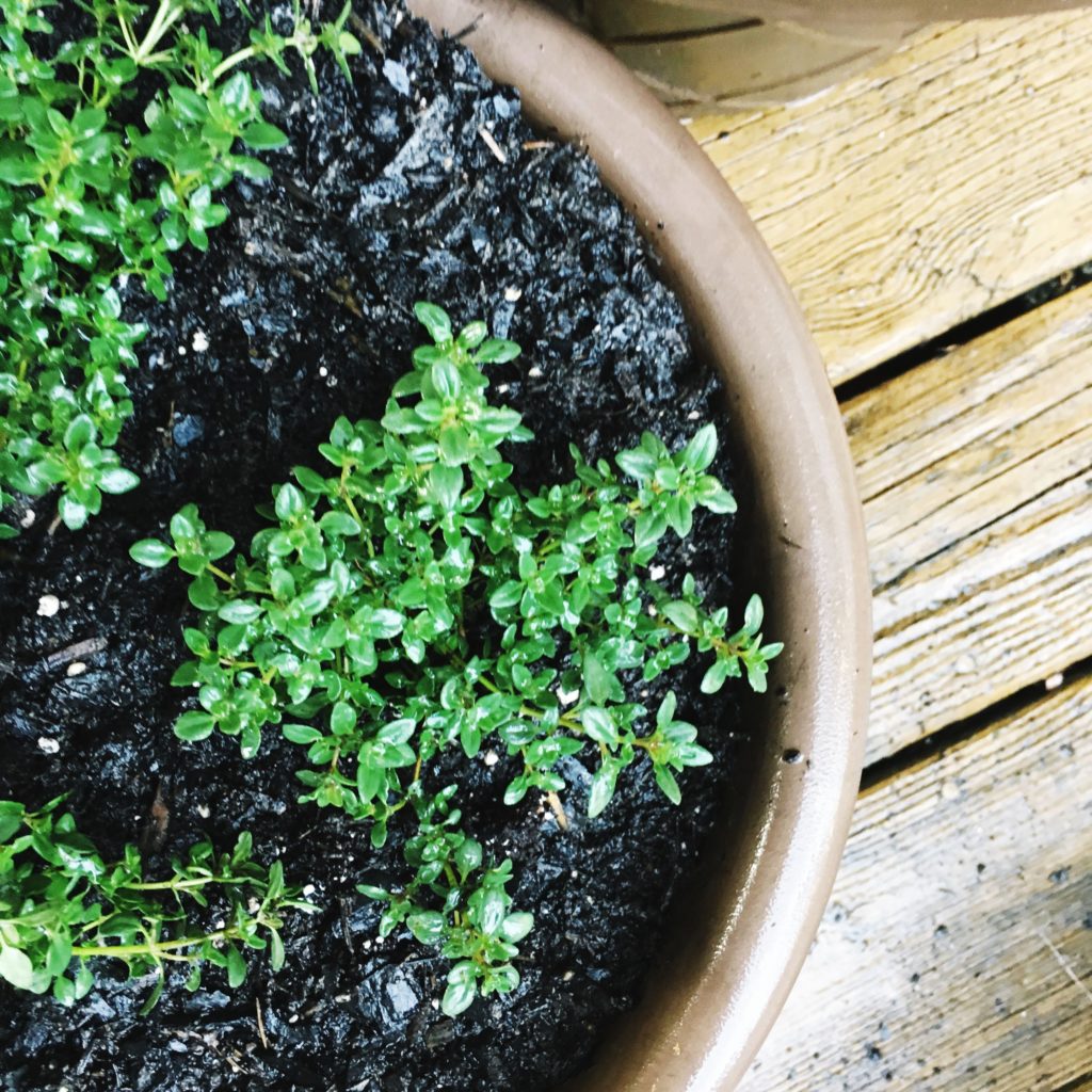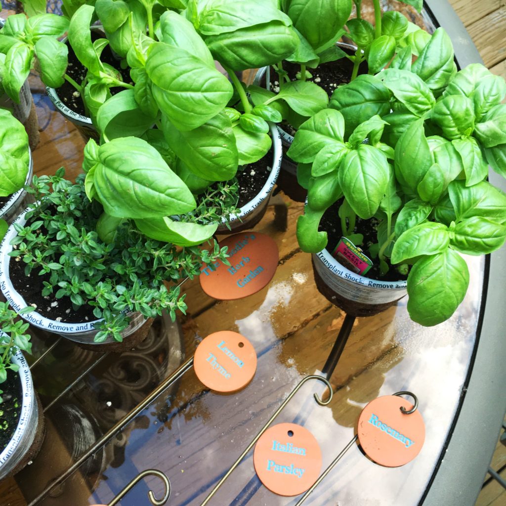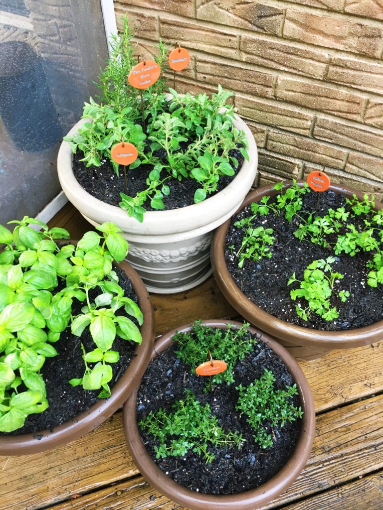This year we replanted our… basil, oregano (we bought both Greek and Italian this time), lemon thyme, all the mints (sweet mint, chocolate mint), lemon balm and rosemary.