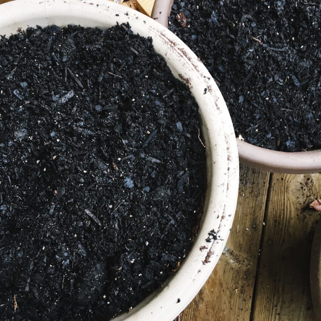 Since we were planting in pots, it’s very important that you pick soil that is marked for container use, and we like to go for a soil that is both organic and is meant for growing herbs, veggies and other edible plants.