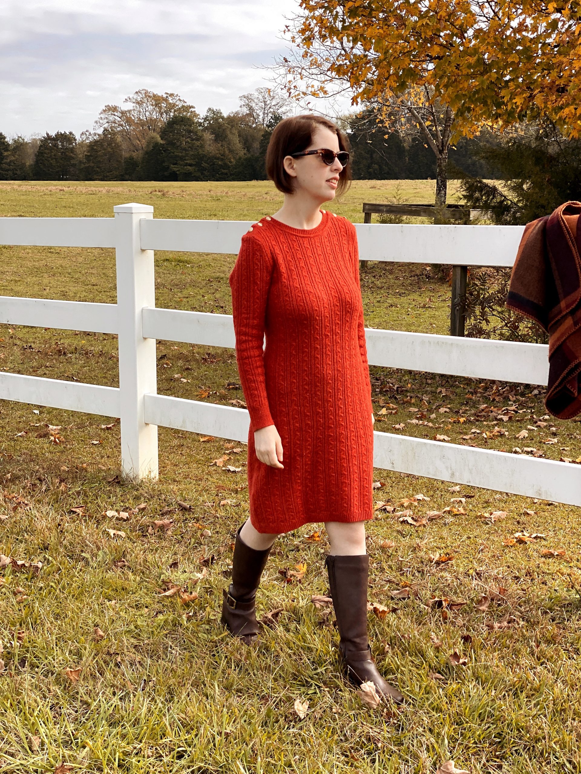 Although it’s too chilly in the mornings, I can often see horses roaming the pastures when I drive home in evenings and I knew it would be the perfect spot to get some photographs of my new favorite sweater dress from Talbots.