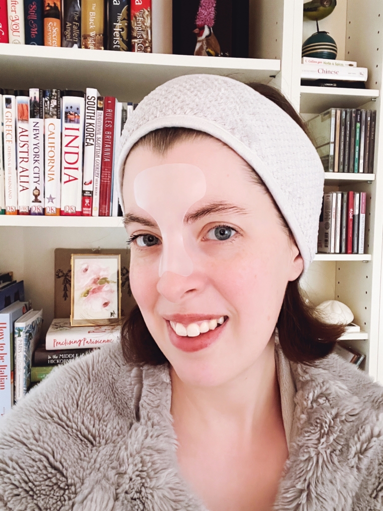They’re so easy to apply. I always start with a clean dry face (use these patches without any moisturizer or any other skincare products on your skin). Next, remove the tabs from the sticky side (which will go against your skin) and smooth the patch so there aren’t any bubbles.