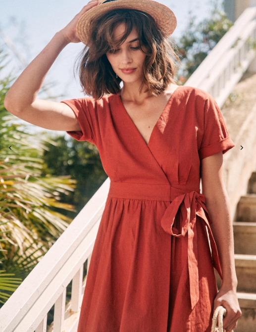 While the Marielle Dress is available in a variety of prints, I love infusing my summer wardrobe with lots of yellow making the Ochre Foliage Print. I also love it in Terracotta see below.