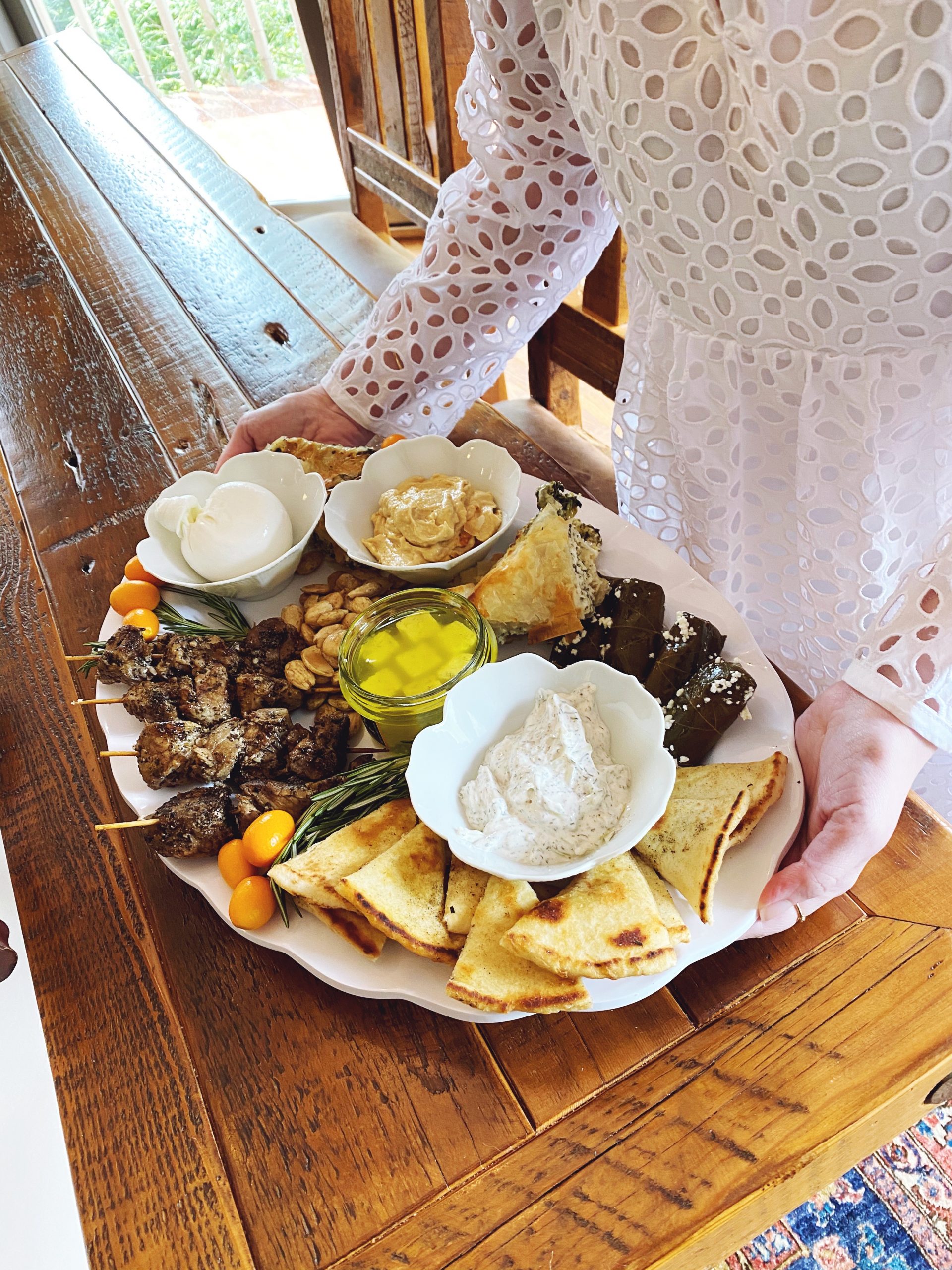 I first starting planning out the exact menu for this Mediterranean centered meal when we were on our way back from Charleston. I’d briefly considered just making this meal at home, but after I found the perfect platters from Amanda Lindroth (and I saw the pictures of the home we would be staying at during our time in Boone) I decided why not make all of the dishes I’d thought up while we were on vacation. It’s so much fun to pick a meal to prepare day of the trip, and this particular meal provided us with leftovers that lasted through the remainder of our trip.