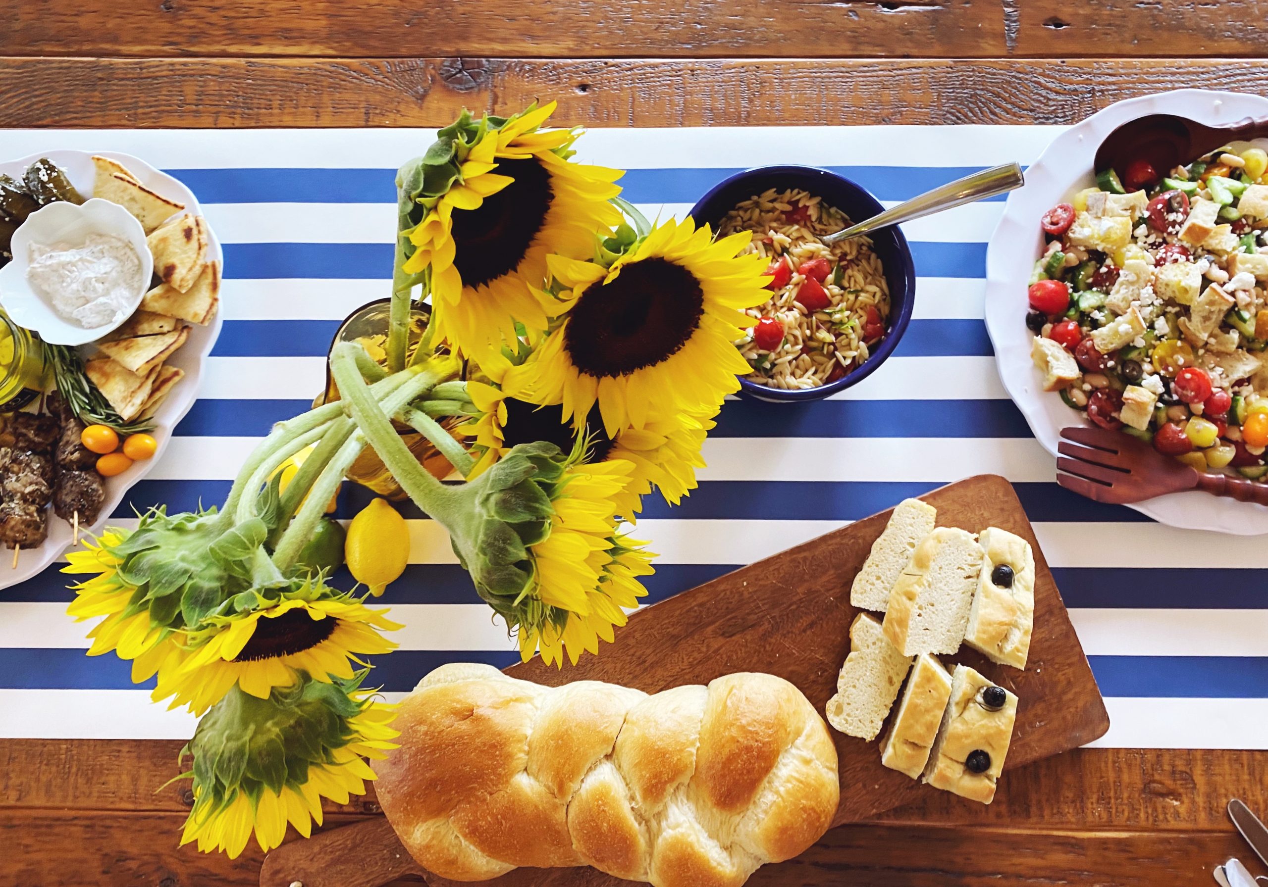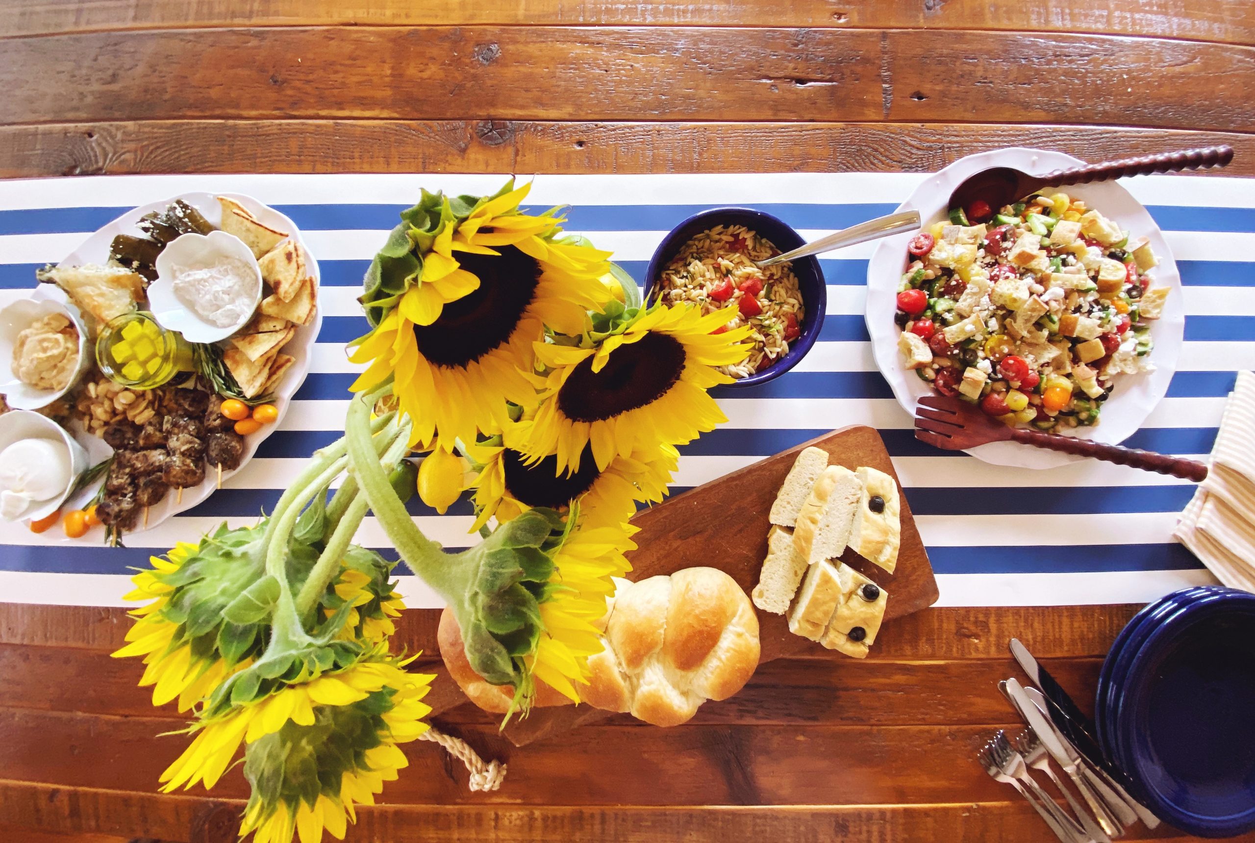 This Mediterranean inspired board was months in the planning, and I was so happy that we found a local Greek restaurant (High Country Greek) in Boone, that was the perfect option for procuring a few of the much needed food items for our main board.