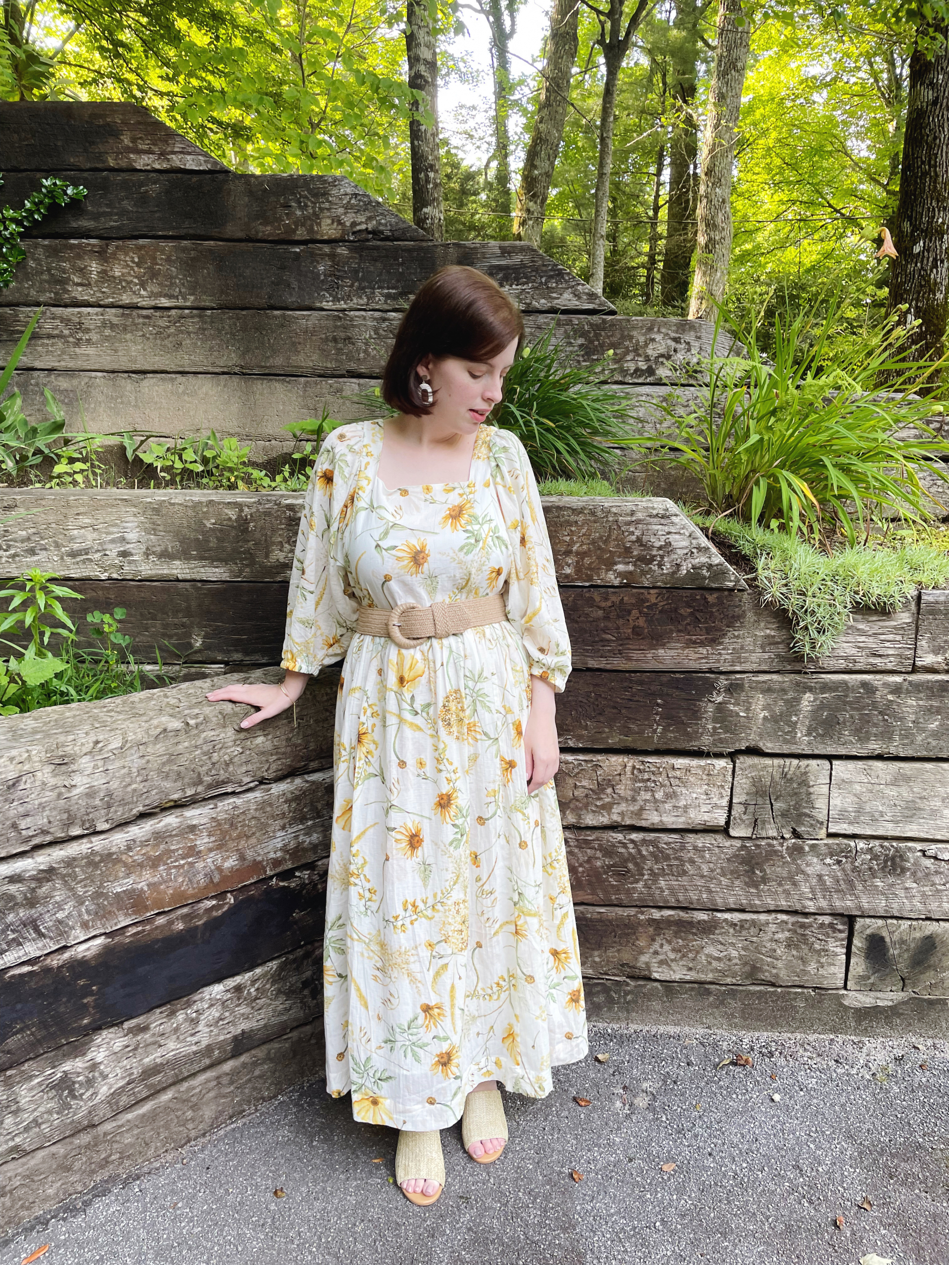 Flowy fabrics, feminine details, and beautiful floral prints have definitely been an ongoing theme this season. The romantic style of dressing has been one of my favorite trends, and this dress had so many details that made it uniquely beautiful, from the square neckline to the simple, gathered sleeves. It was made for exploring gardens, enjoying an impromptu picnic, or exploring the woodland surroundings during our recent stay in Highlands, North Carolina.