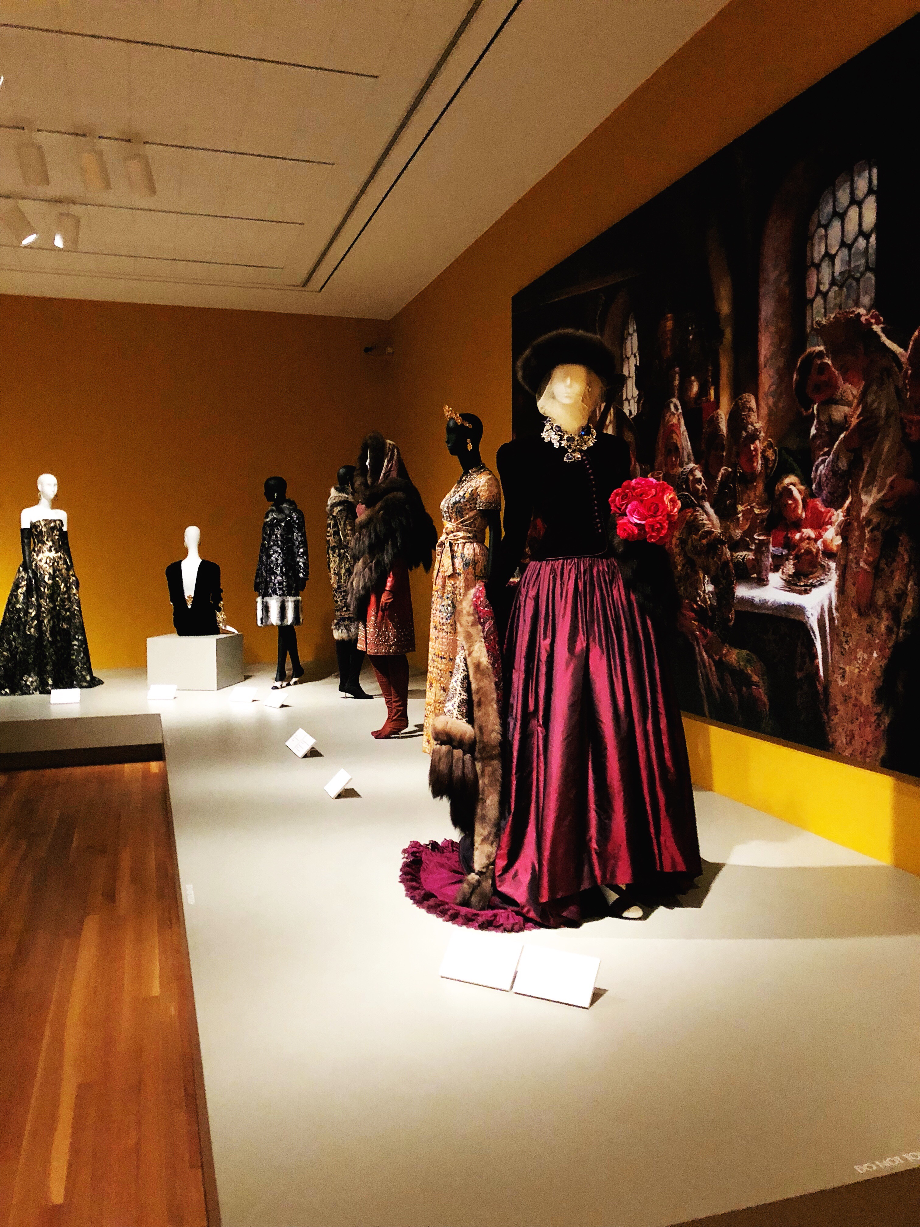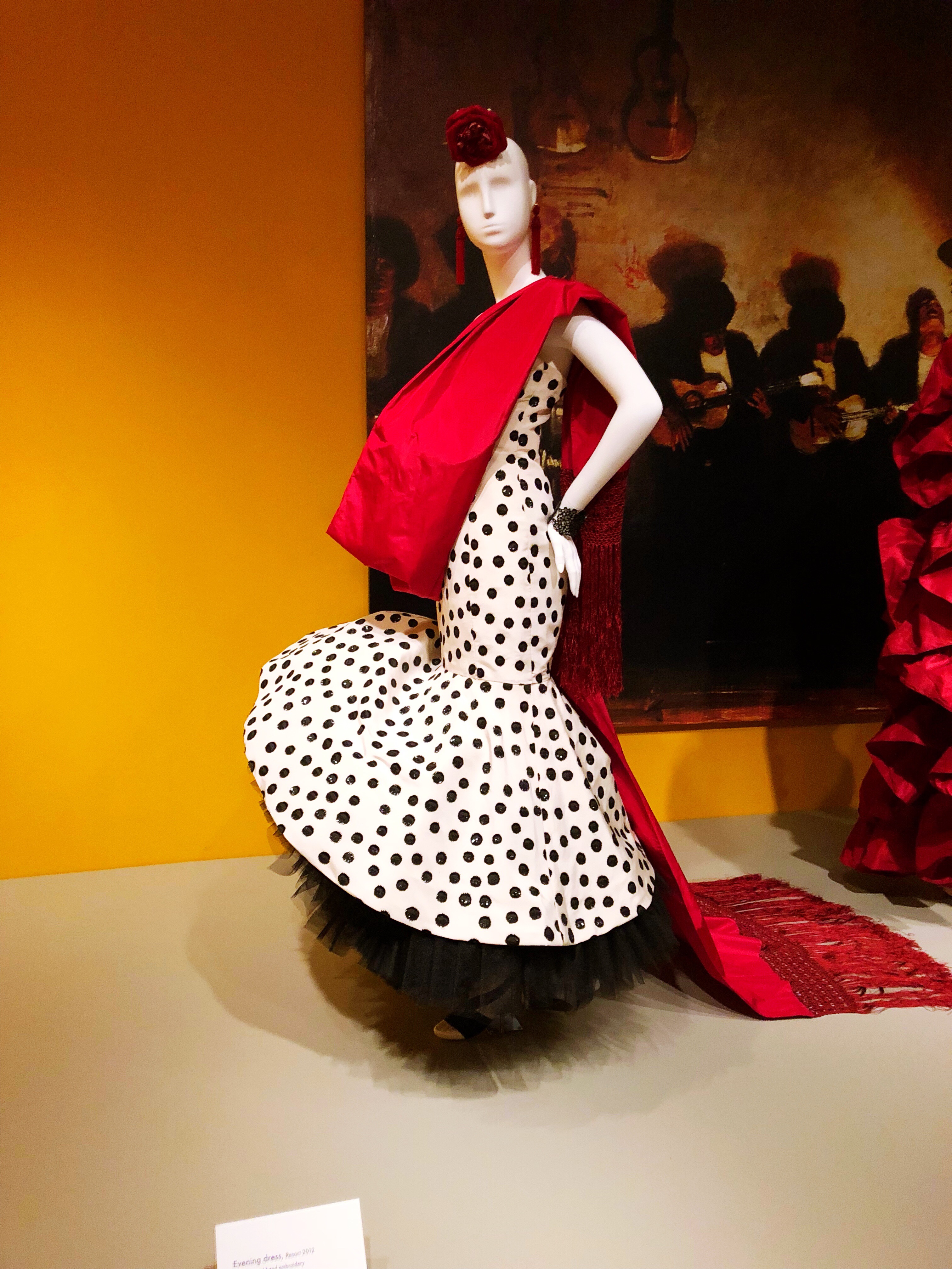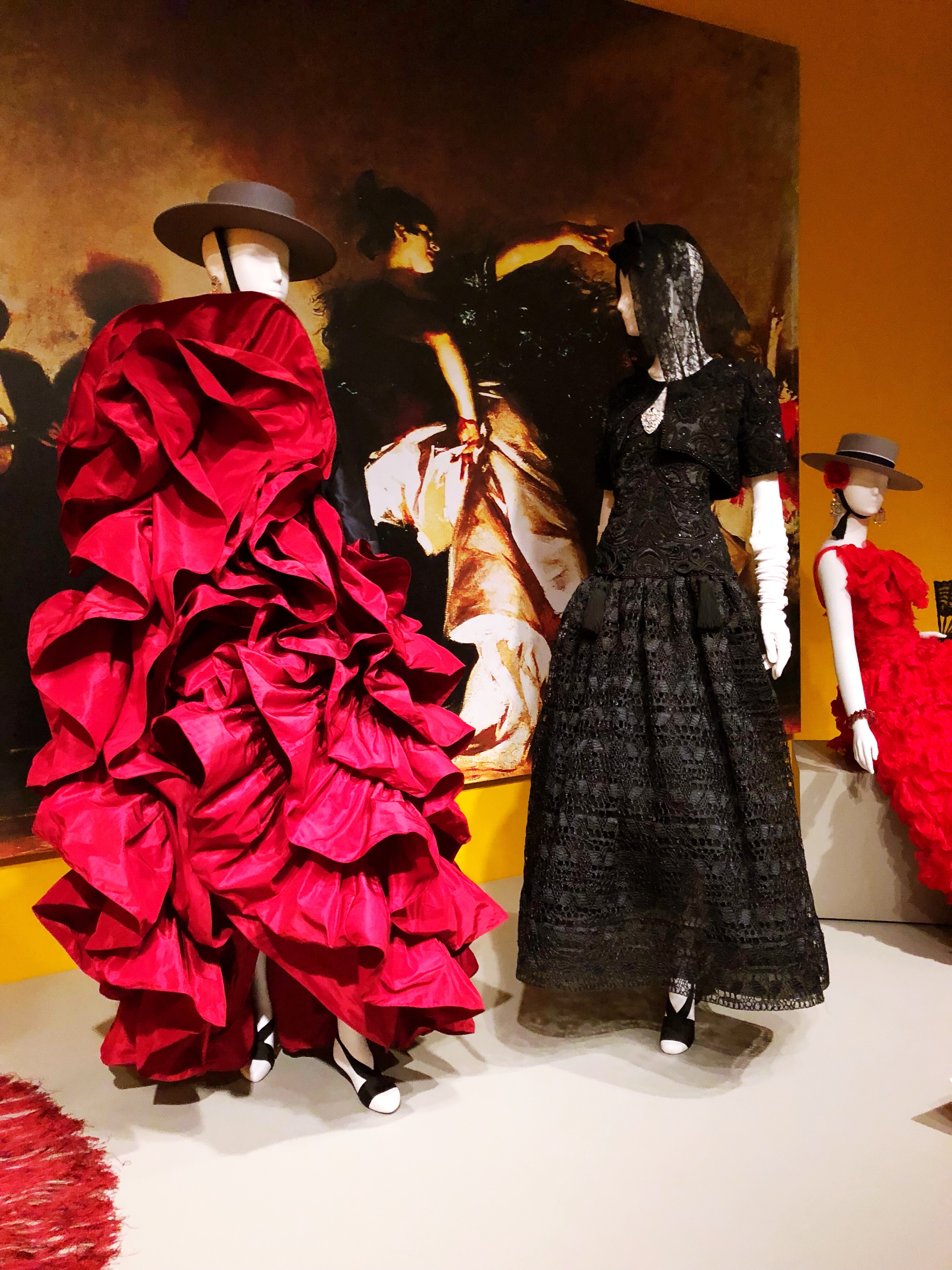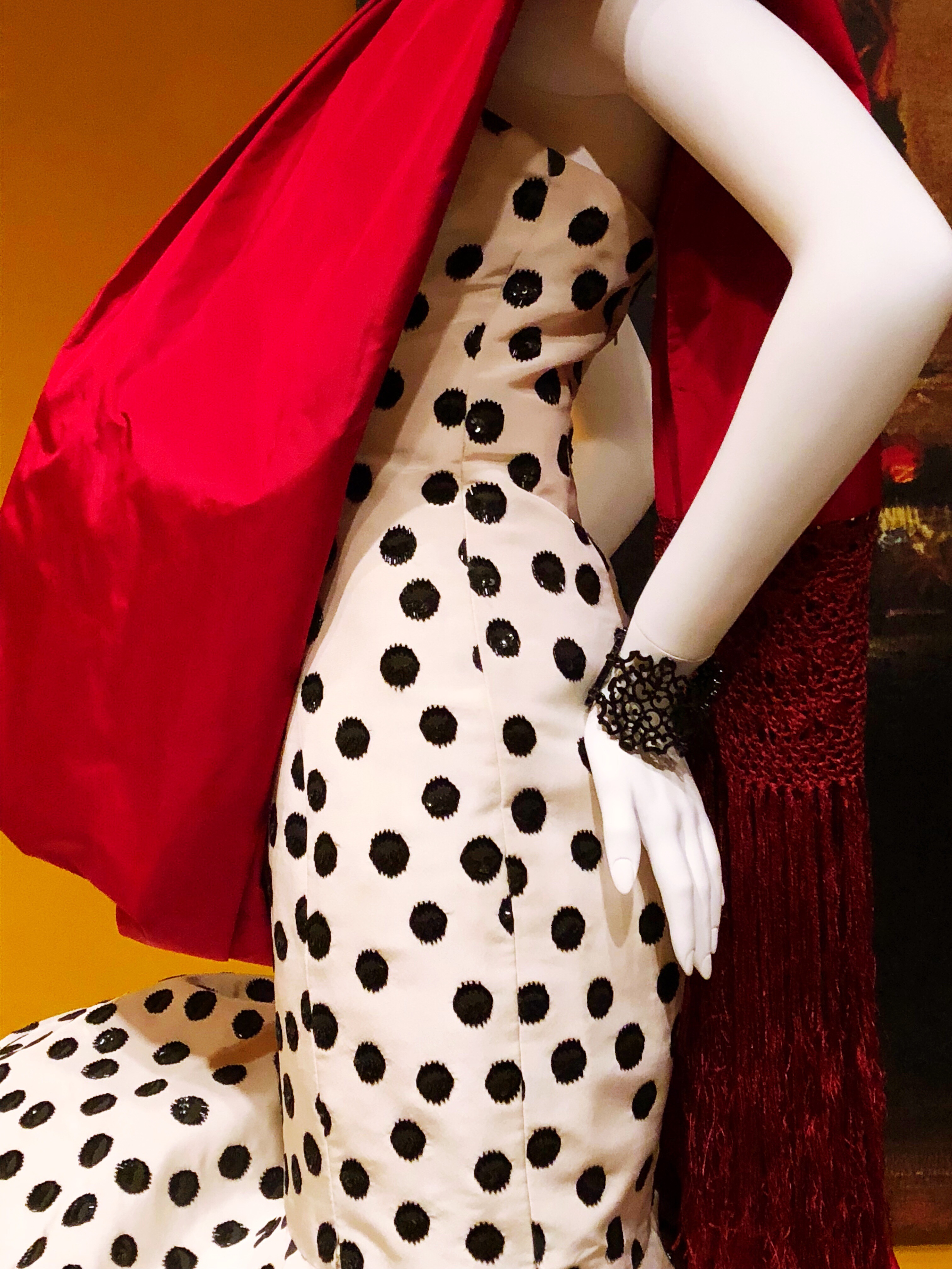 This quote alone tells you what sort of impact De la Renta’s time at the couture house of Balenciaga had on him as a designer. The people, customs and history of Spain all served as inspiration before he was even hired to start sketching designs for prospective clients at the well-known Spanish fashion house. Traces of the arts and culture of Spain along with the vibrant color palettes are ever-present in this collection. The black lace and court costumes that are featured in this particular exhibition were inspired by portraits of Francisco de Goya. I also loved the cascading ruffles in his designs that were inspired by his encounter with Pila Lopez (a well-known and widely celebrated flamenco dancer.)