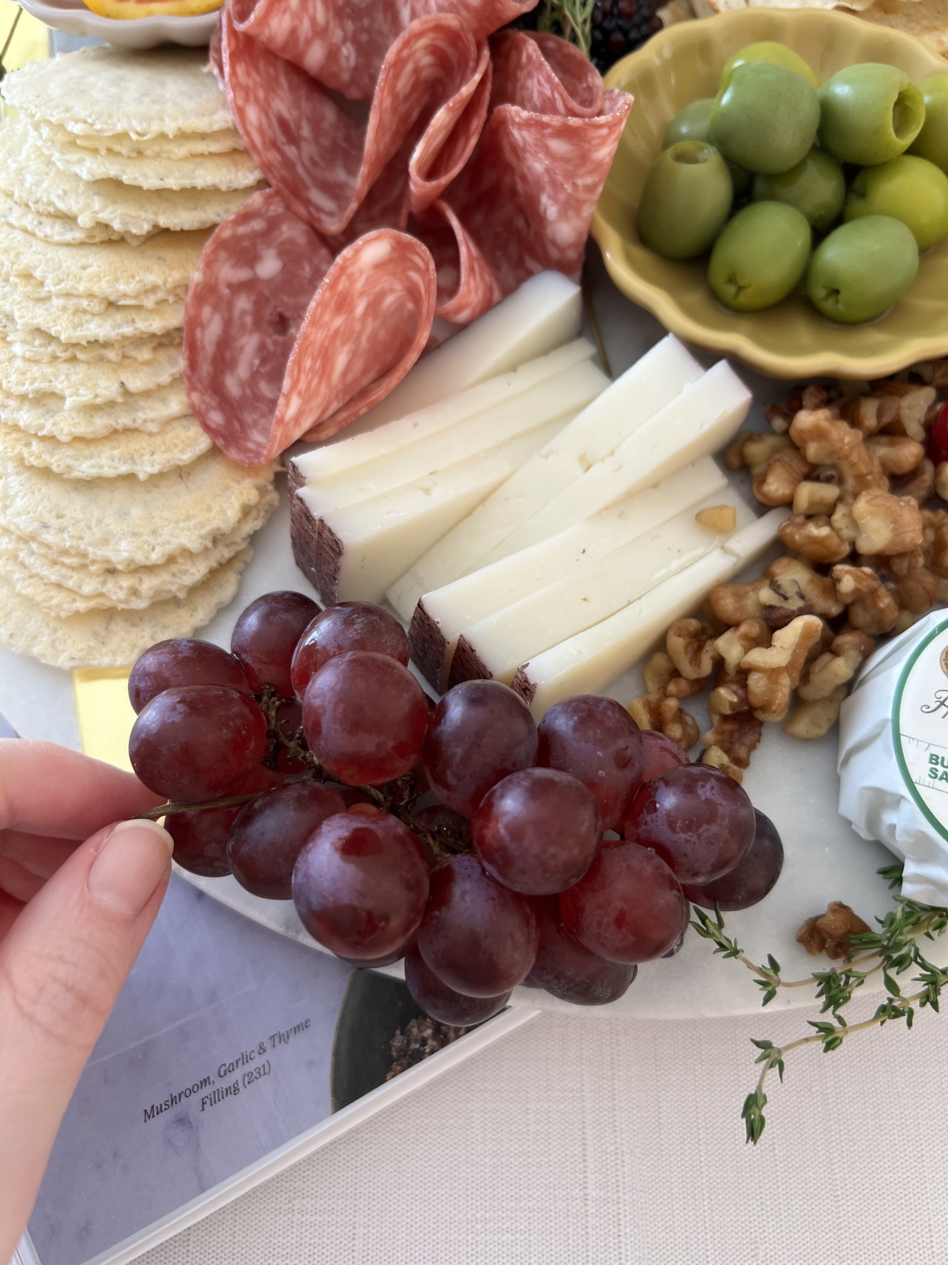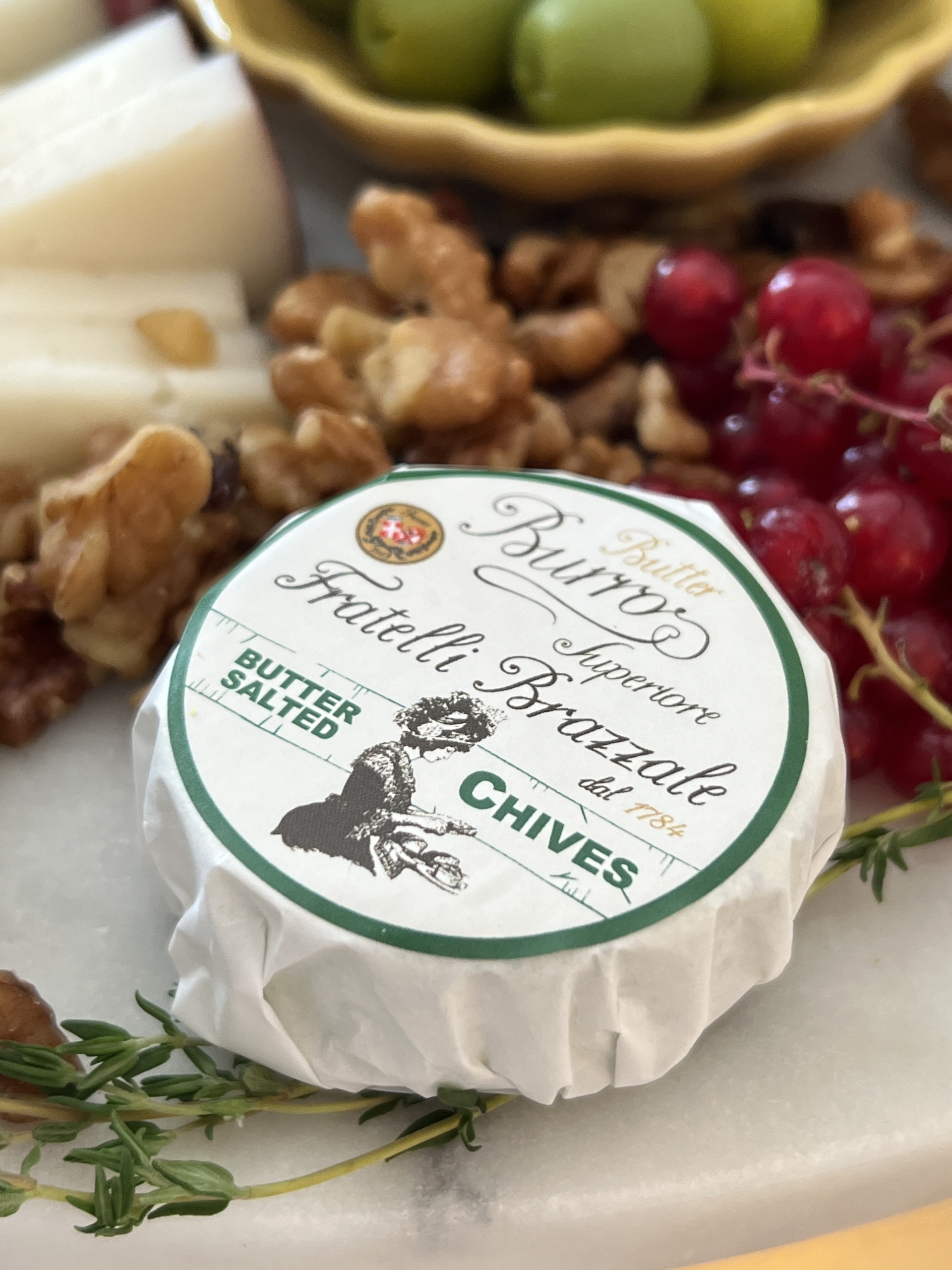 I found all of my fruits and herbs at our local Harris Teeter, including a collection of three salted butters from Italy. The chive butter paired deliciously with this board. The Parchment Crispbread is something I’ve been eyeing for ages (also from our local HT) and I absolutely adore it. So light and airy with a delicious flavor that doesn’t overpower your palate.