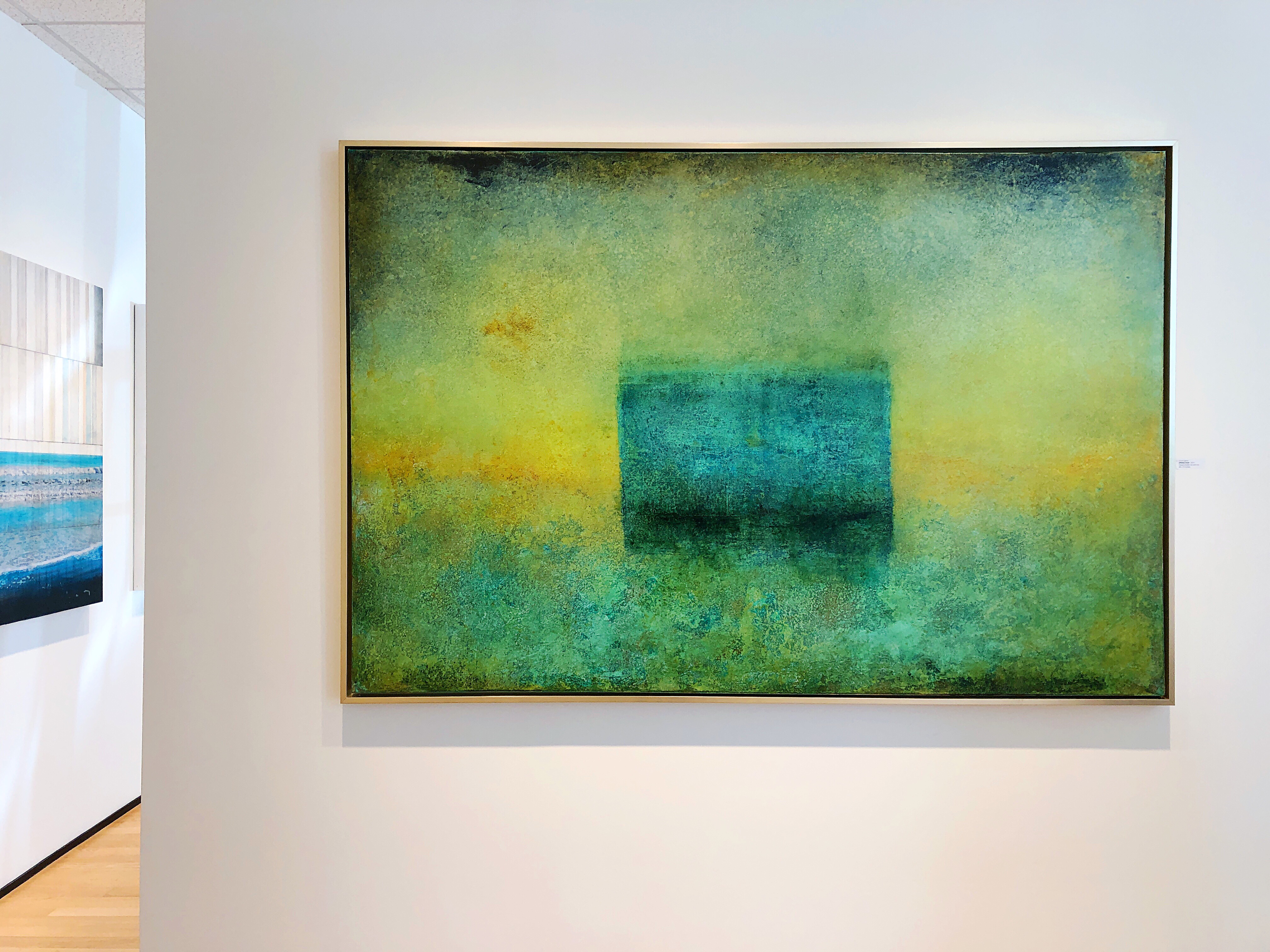Moving onto the second room of the gallery, we were able to view works in the instantly recognizable style of artist Scott Upton. His exhibition is titled, Colour Field. We were both immediately drawn to the calming color palette of one painting in particular, Fresh Air.