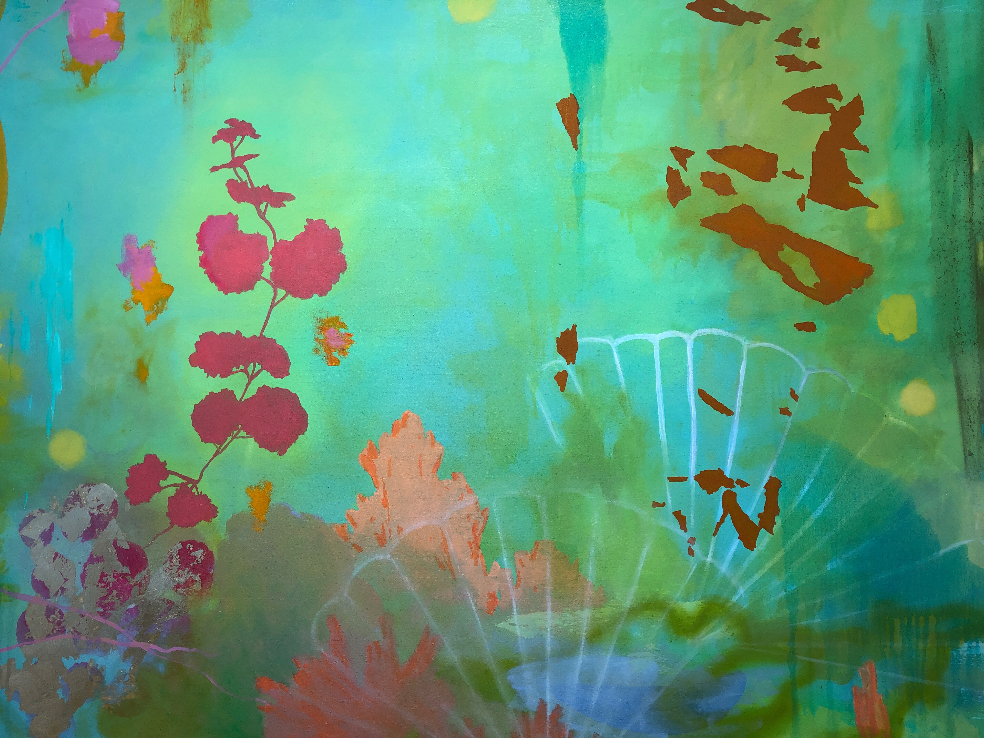 These inspirational ecosystems include the Everglades, rainforest, amazon, wetlands and many scuba diving underwater locations. Her paintings are evidence of her personal search to comprehend universal themes of growth, resistance, and adaptation that she sees in nature, and in her own life. – Hidell Brooks