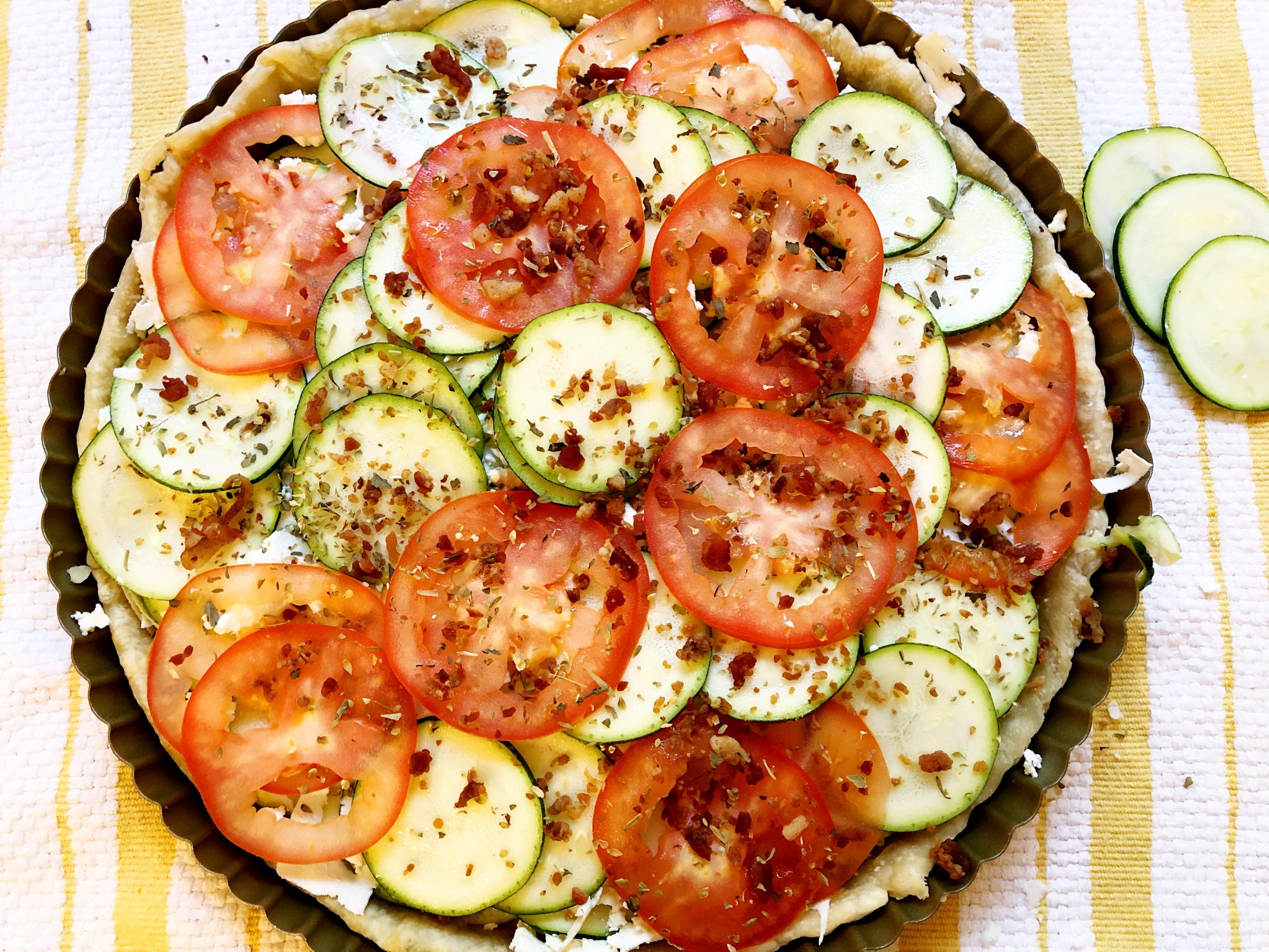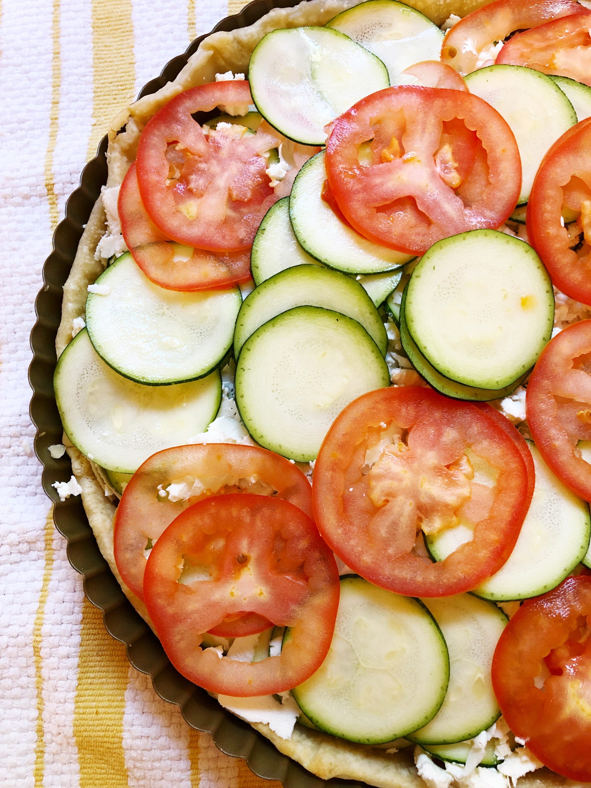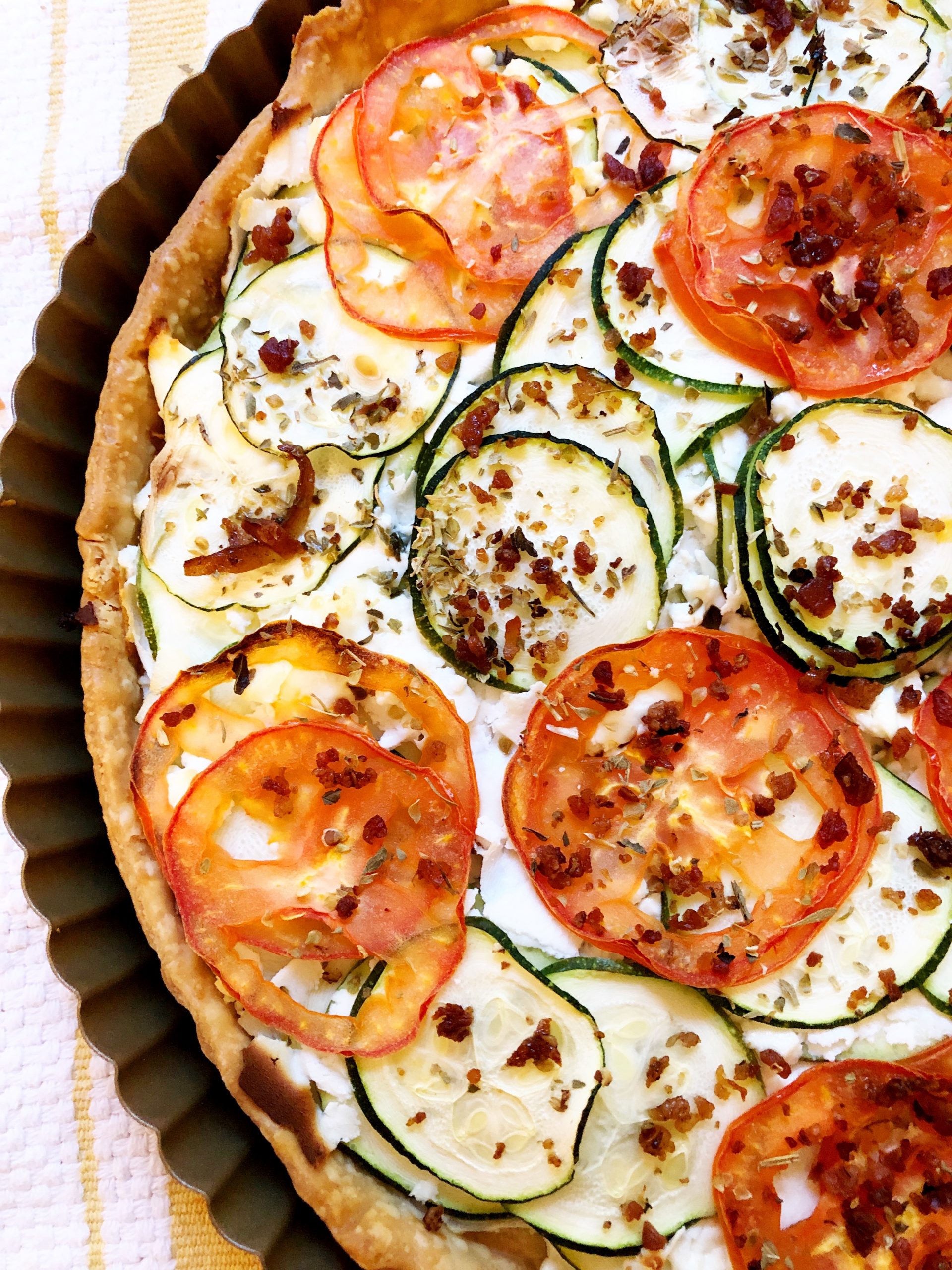 Zucchini, Tomato Ricotta Goat Cheese Tart with Italian Herbs